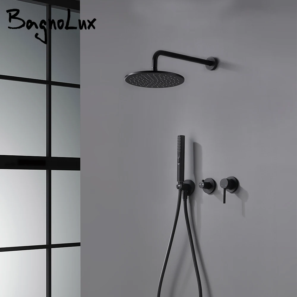 Bagnolux-mitigeur de douche intégré en laiton noir avec support de sortie d'eau ensemble de salle de bains pour déviateur de tête de pluie.