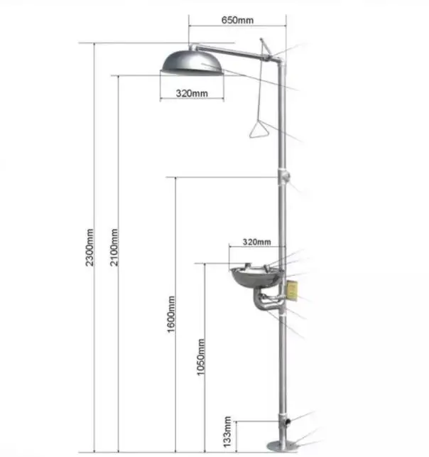 Ensemble de douche vertical composé de douche oculaire de secours de l'acier inoxydable 304 double rondelle d'oeil de secours composée.