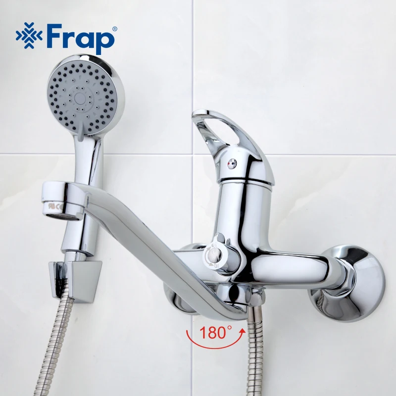 FRAP robinet de bain-douche en laiton avec pomme de douche ABS tuyau de sortie de 300mm chromé F2203 1 ensemble.