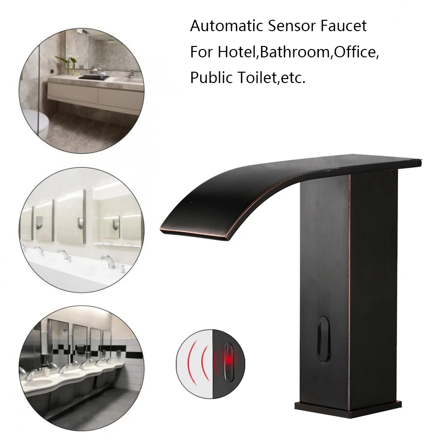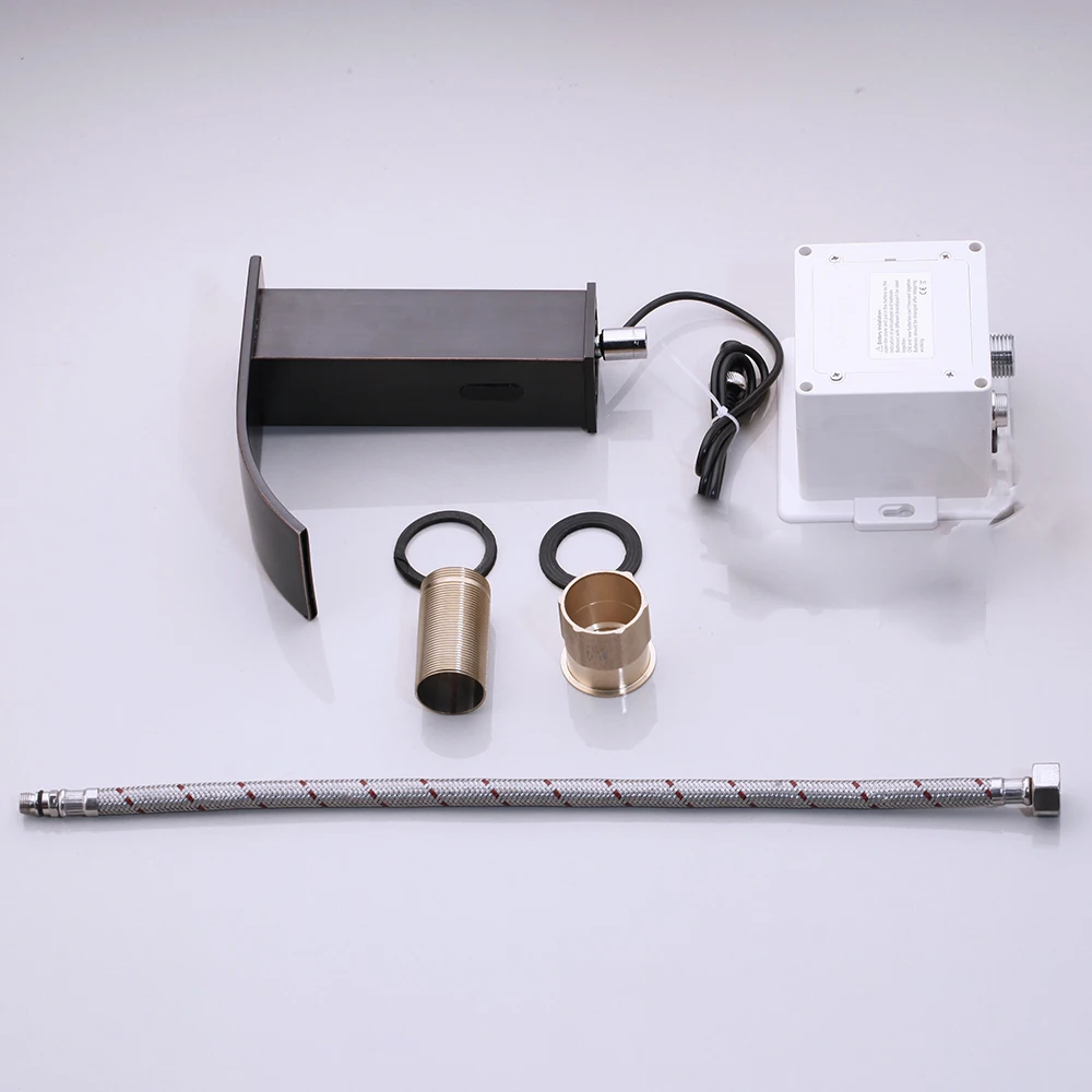 JIENI noir et Chrome robinet de salle de bain pont monté capteur automatique mélangeur d'eau grue capteur tactile libre salle de bain évier robinet robinet.