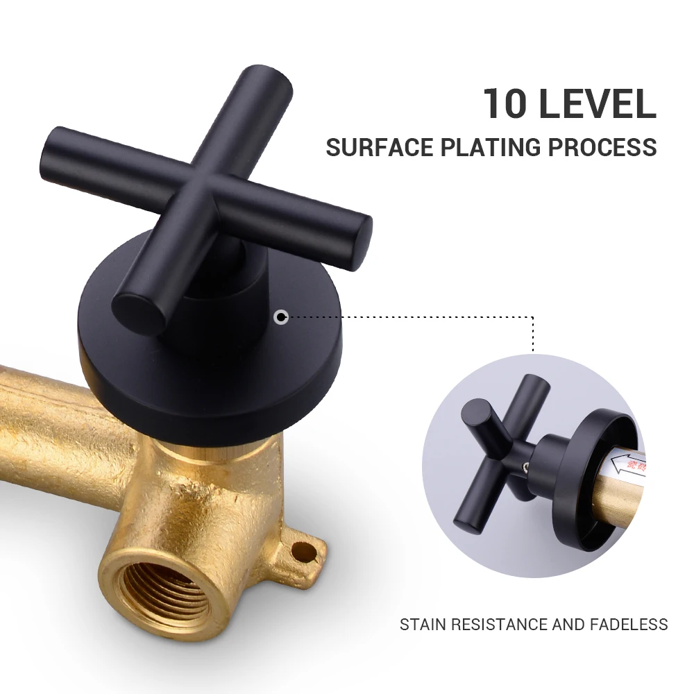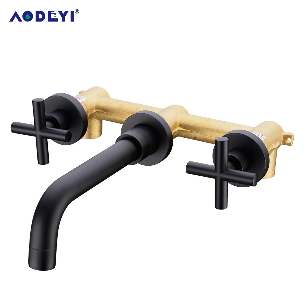 Laiton noir mat Double poignée mural robinets de salle de bain robinet d'évier robinets d'eau chaude et froide mélangeur de bassin or brossé ensemble de robinet
