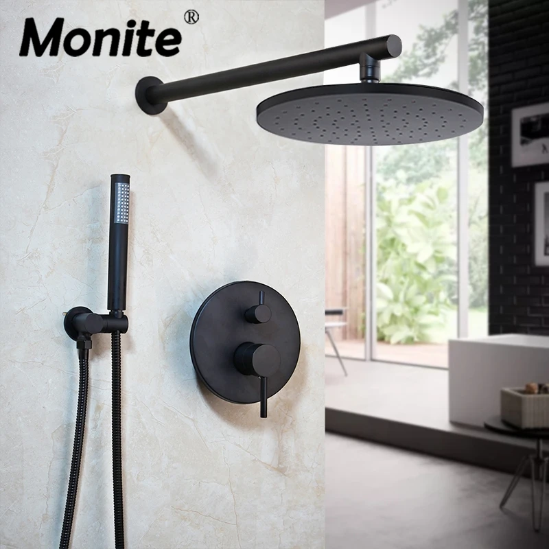 Monite-ensemble de robinets de douche de salle de bains modernes muraux noir mat ensemble de robinets de douche pomme de douche et douchette à main de 8 pouces
