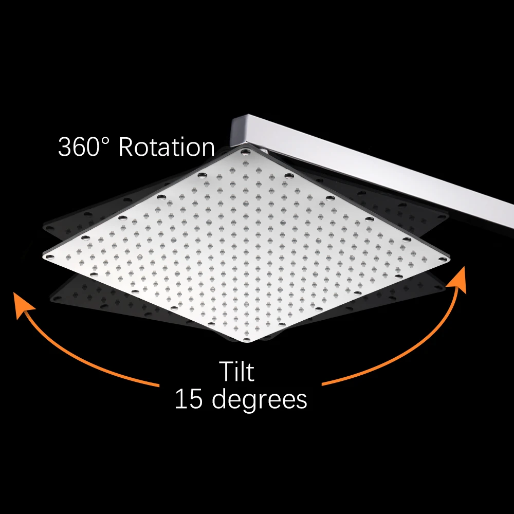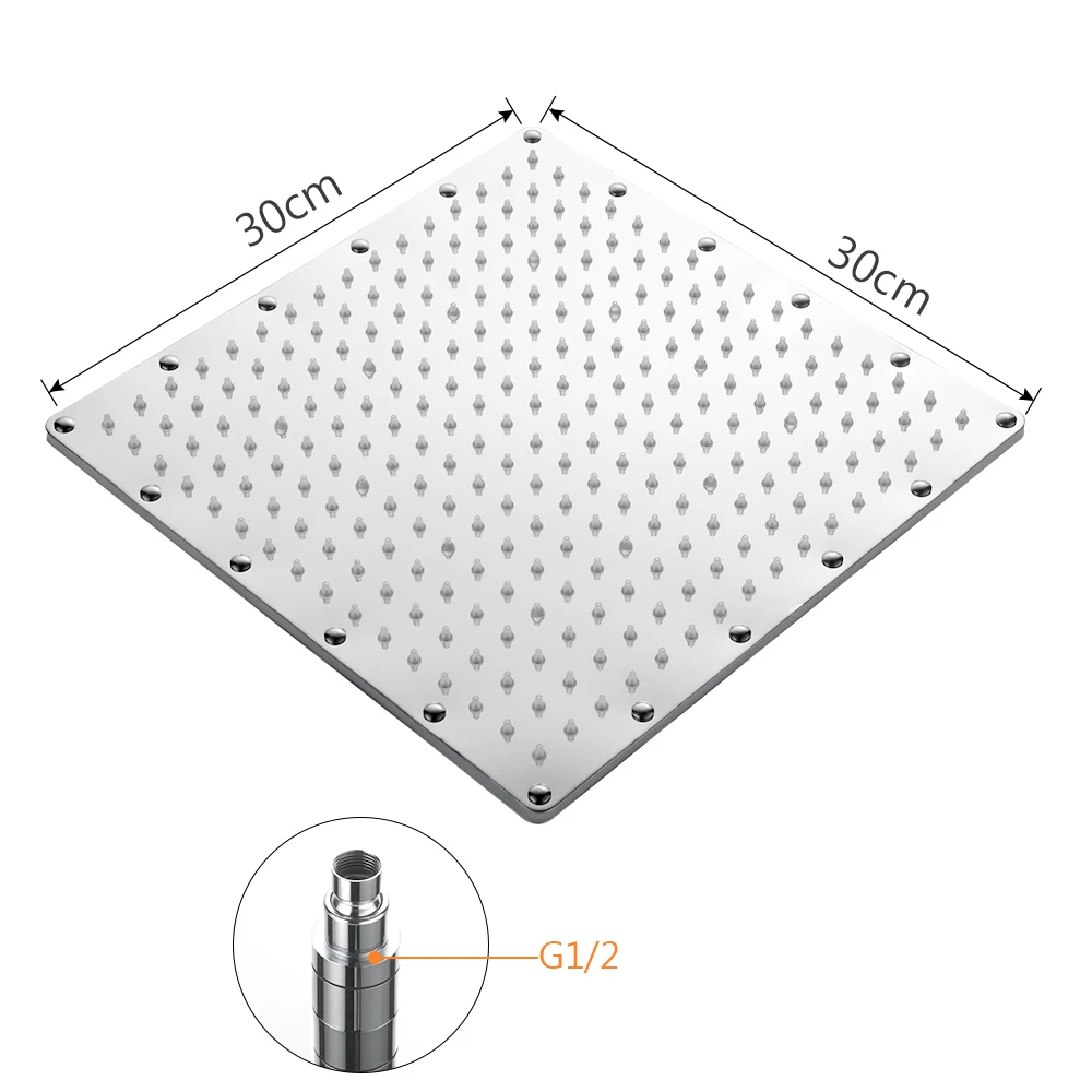 Pommeau de douche ultra-fin carré en acier inoxydable pomme de bain avec effet pluie et puissance d'eau 12 pouces 30cm x 30cm
