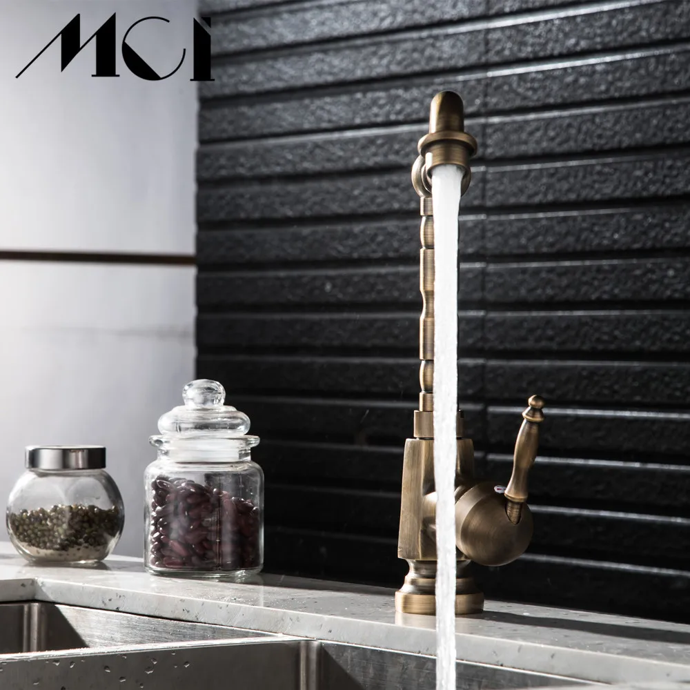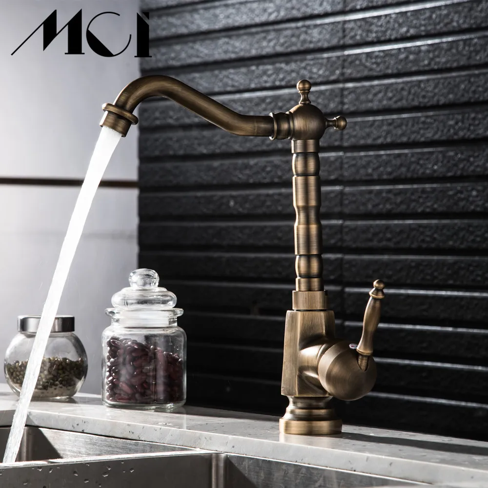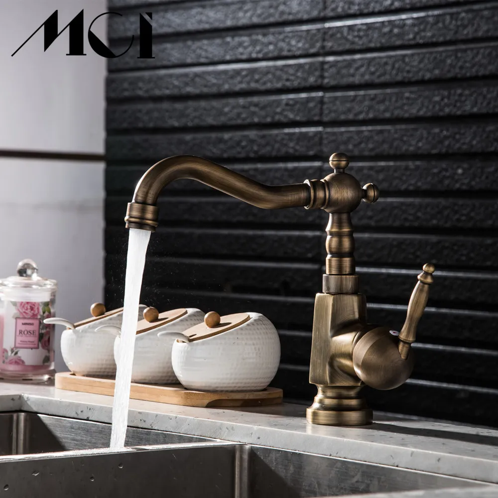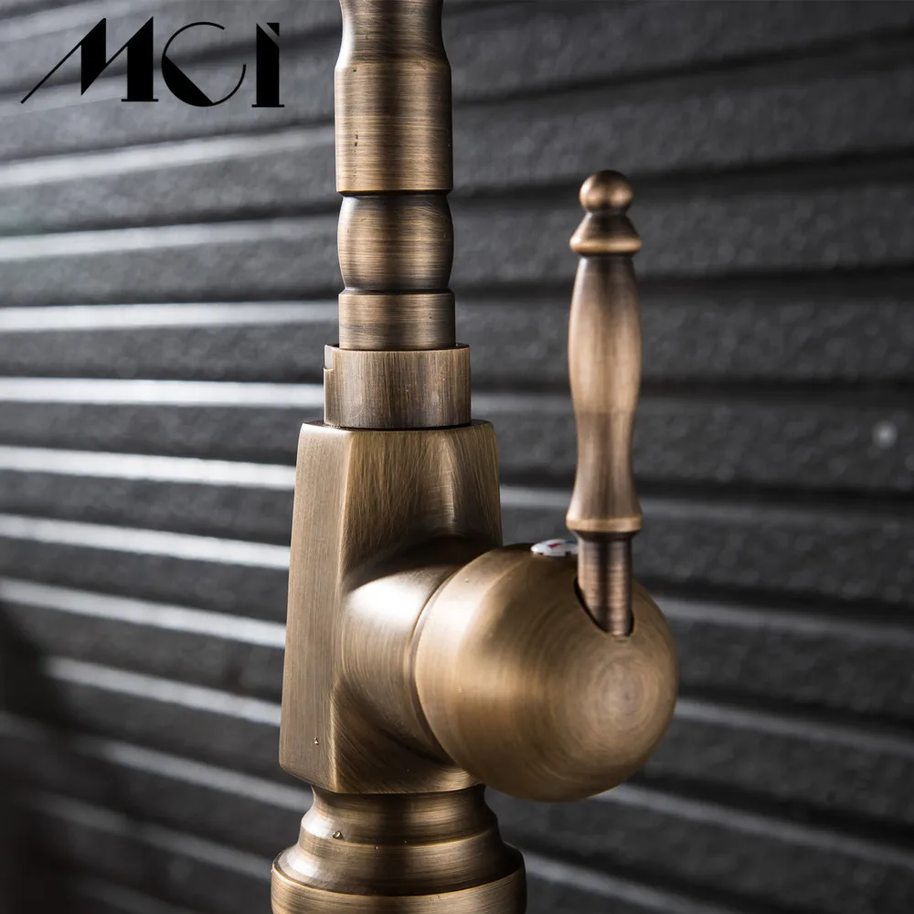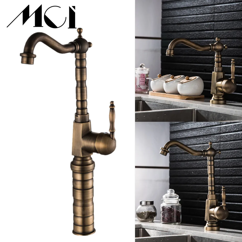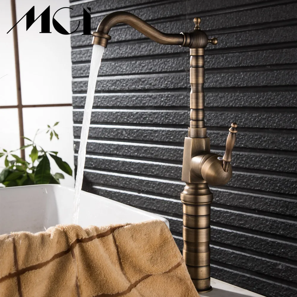 Robinet de salle de bains en laiton Antique sculpté robinet à Long nez robinet de lavage d'évier à Rotation de 360 degrés robinet mitigeur à poignée unique Torneiras Mci.