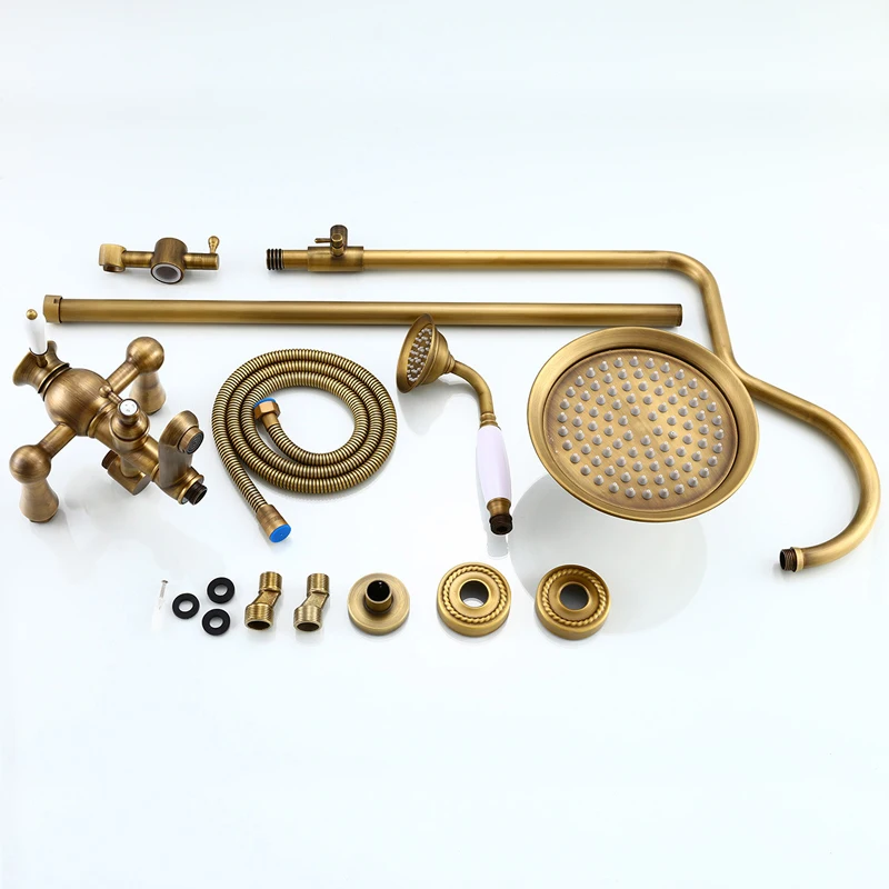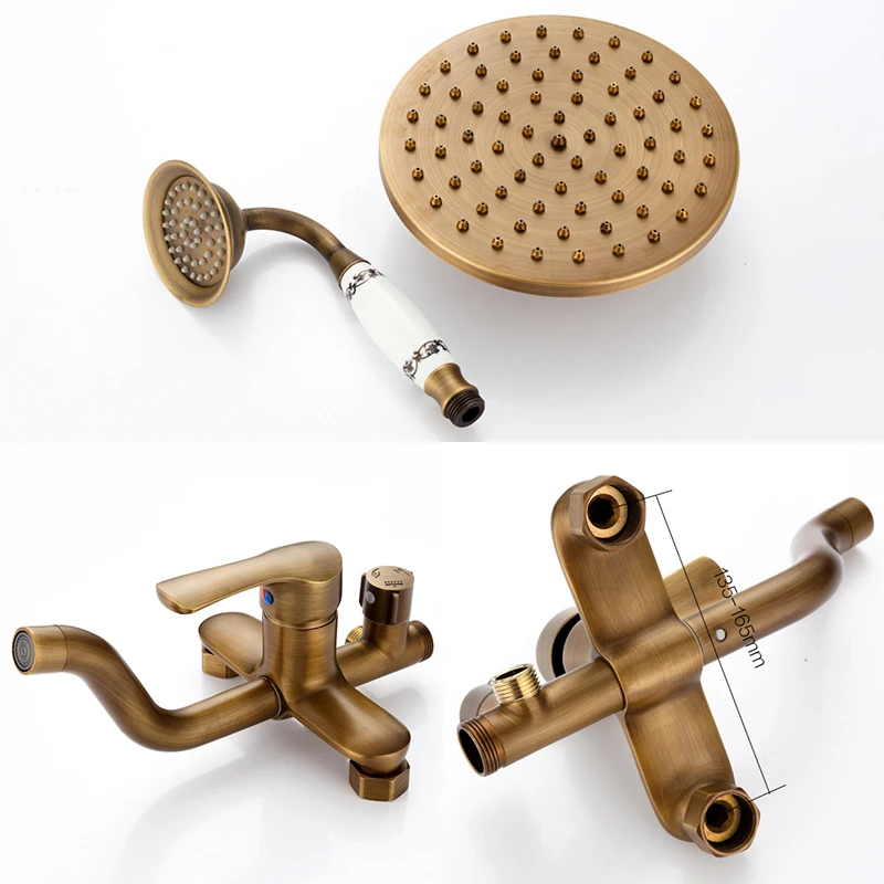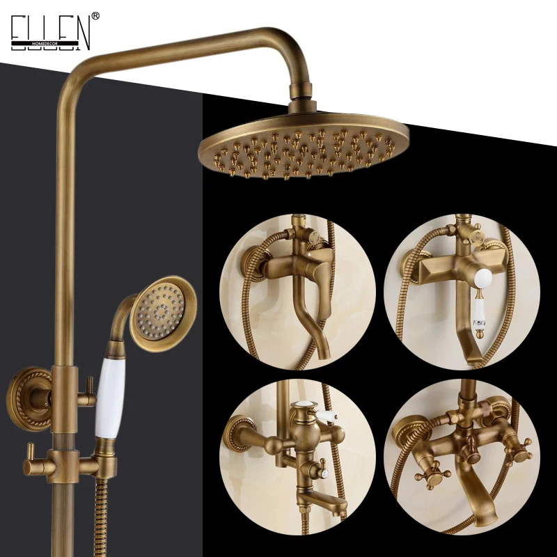 Robinets de baignoire-douche muraux Salle de bains ensemble de douche de pluie en Bronze Antique avec douchette à main montage mural EL0628.
