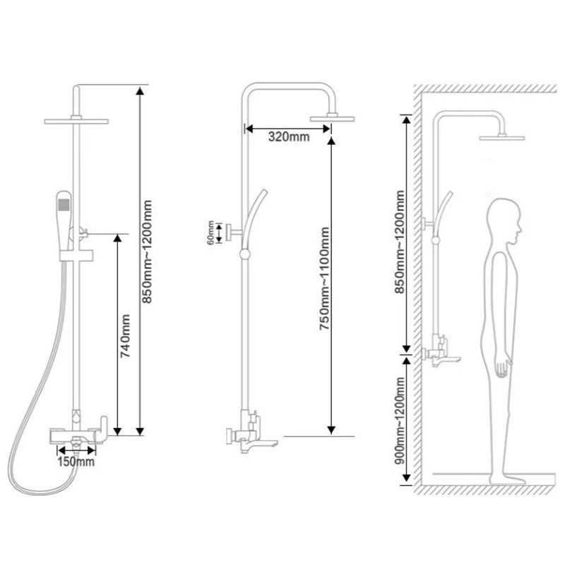Robinets de baignoire-douche muraux Salle de bains ensemble de douche de pluie en Bronze Antique avec douchette à main montage mural EL0628