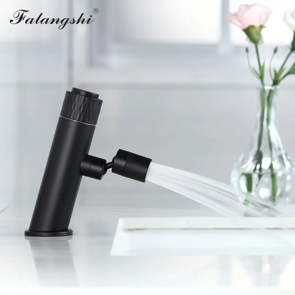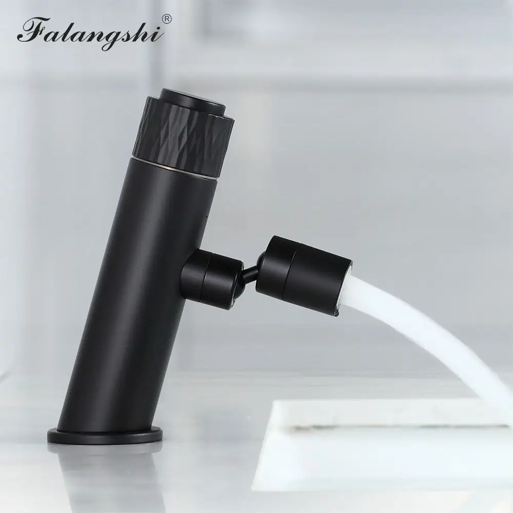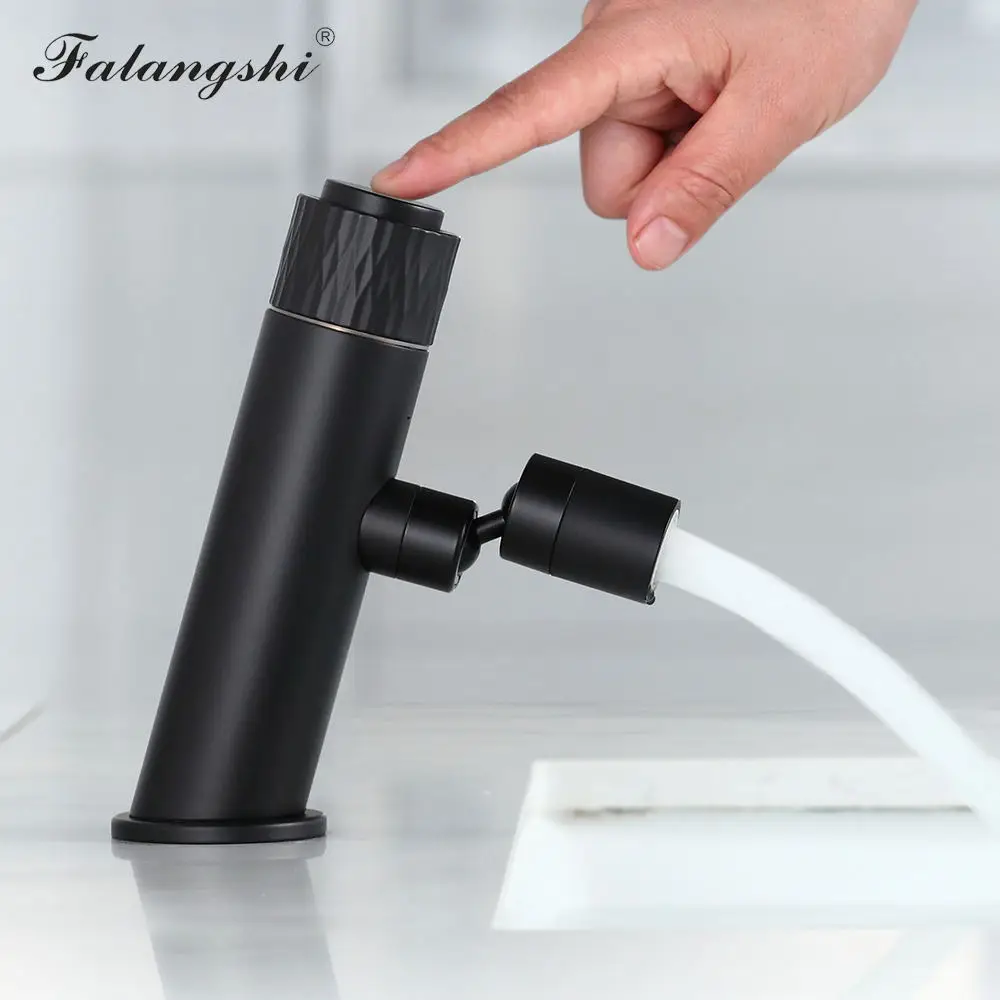 Robinets de lavabo Design à bouton-poussoir noir mat bec Flexible robinets de lavabo de salle de bains mitigeur de lavabo monté sur le pont WB1107
