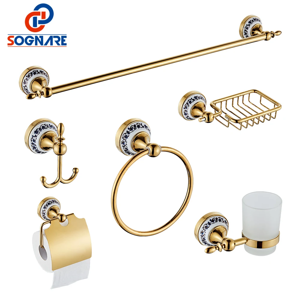 SOGNARE 6 pièces accessoires de salle de bain porte-serviettes simple crochet de peignoir porte-papier support de verre ensemble de boîte à savon ensembles de matériel de bain D1900.