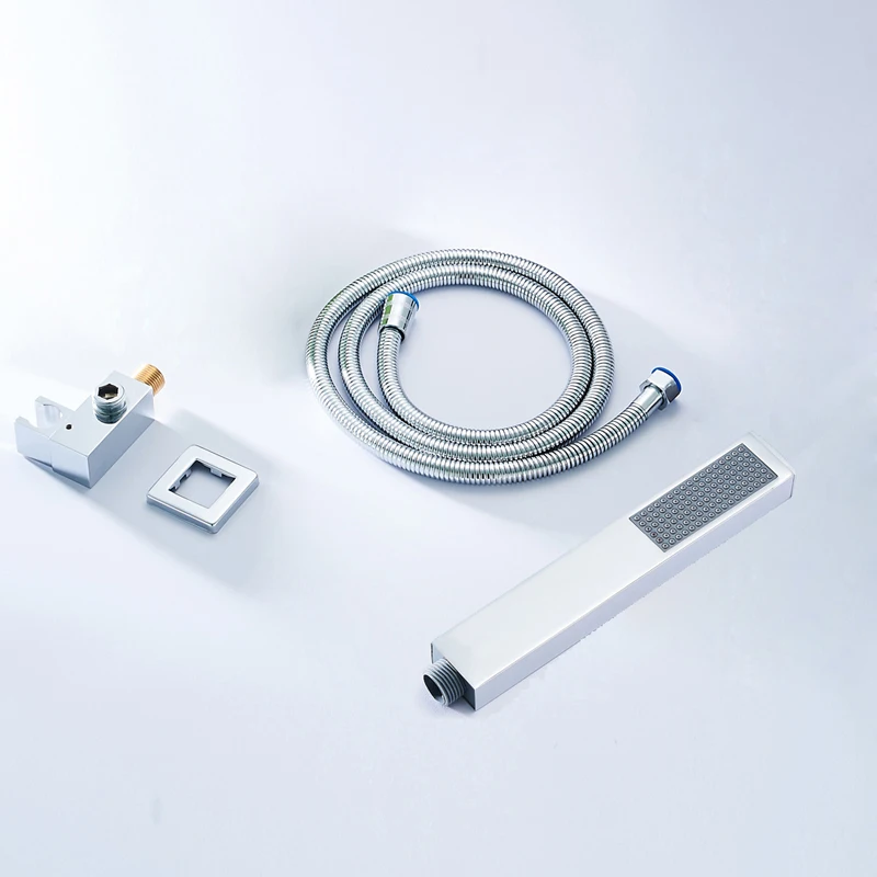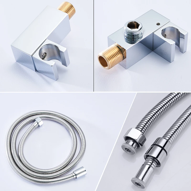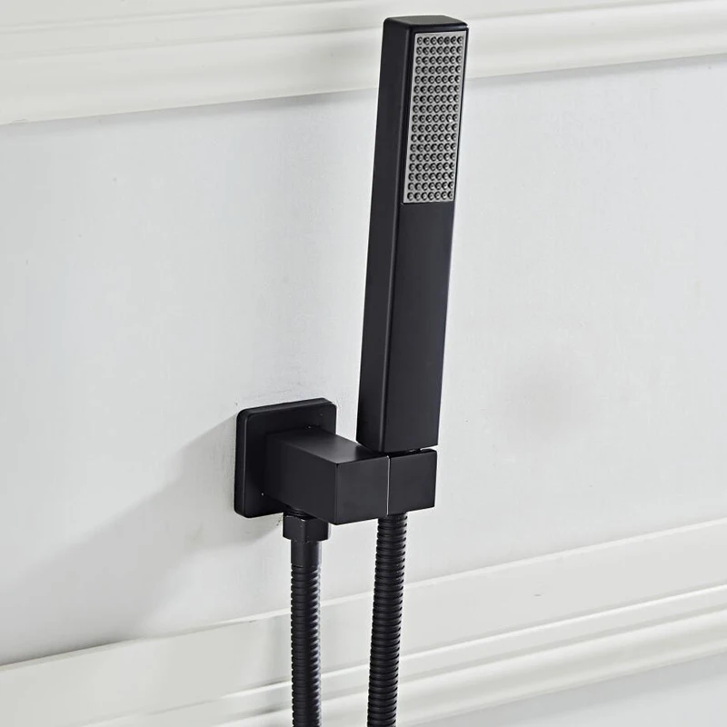BAKALA-douchette à main en laiton pommeau carré noir chromé avec connecteur mural et ensemble de tuyaux de 1.5m économie d'eau en cuivre.