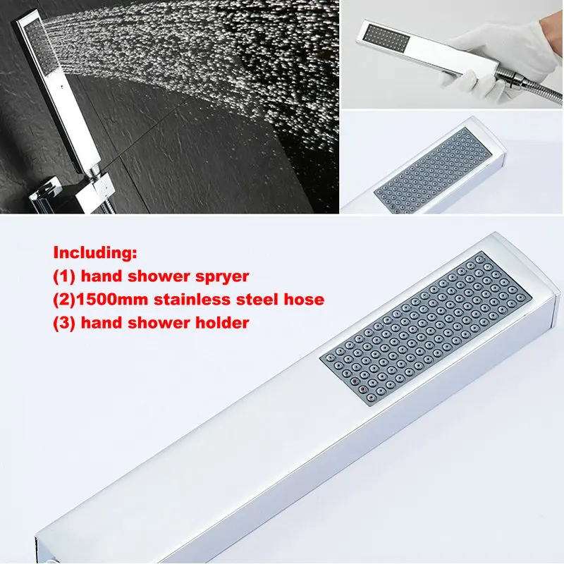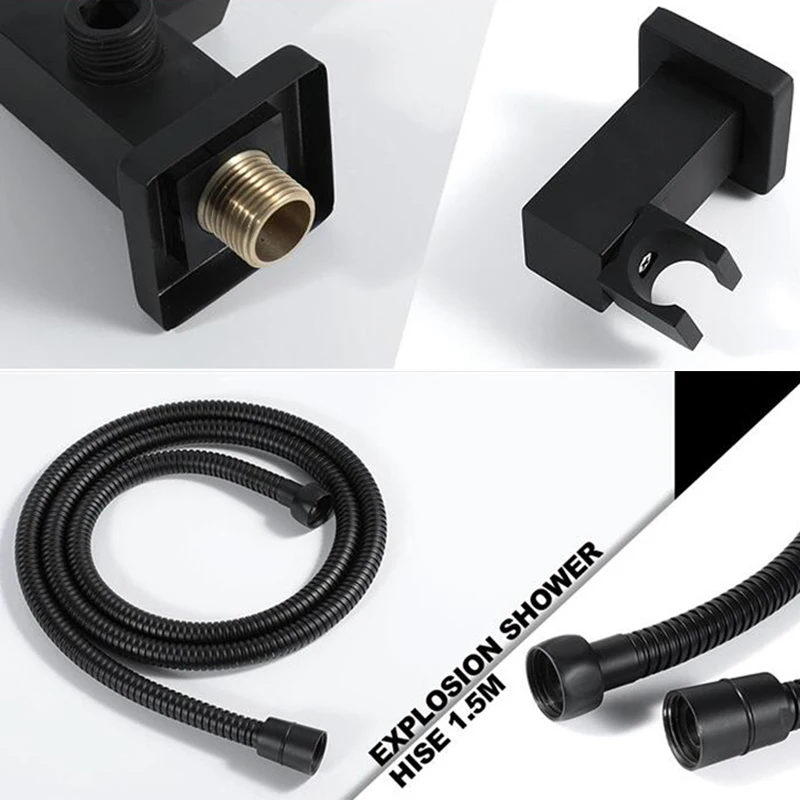BAKALA-douchette à main en laiton pommeau carré noir chromé avec connecteur mural et ensemble de tuyaux de 1.5m économie d'eau en cuivre