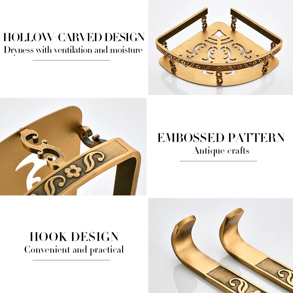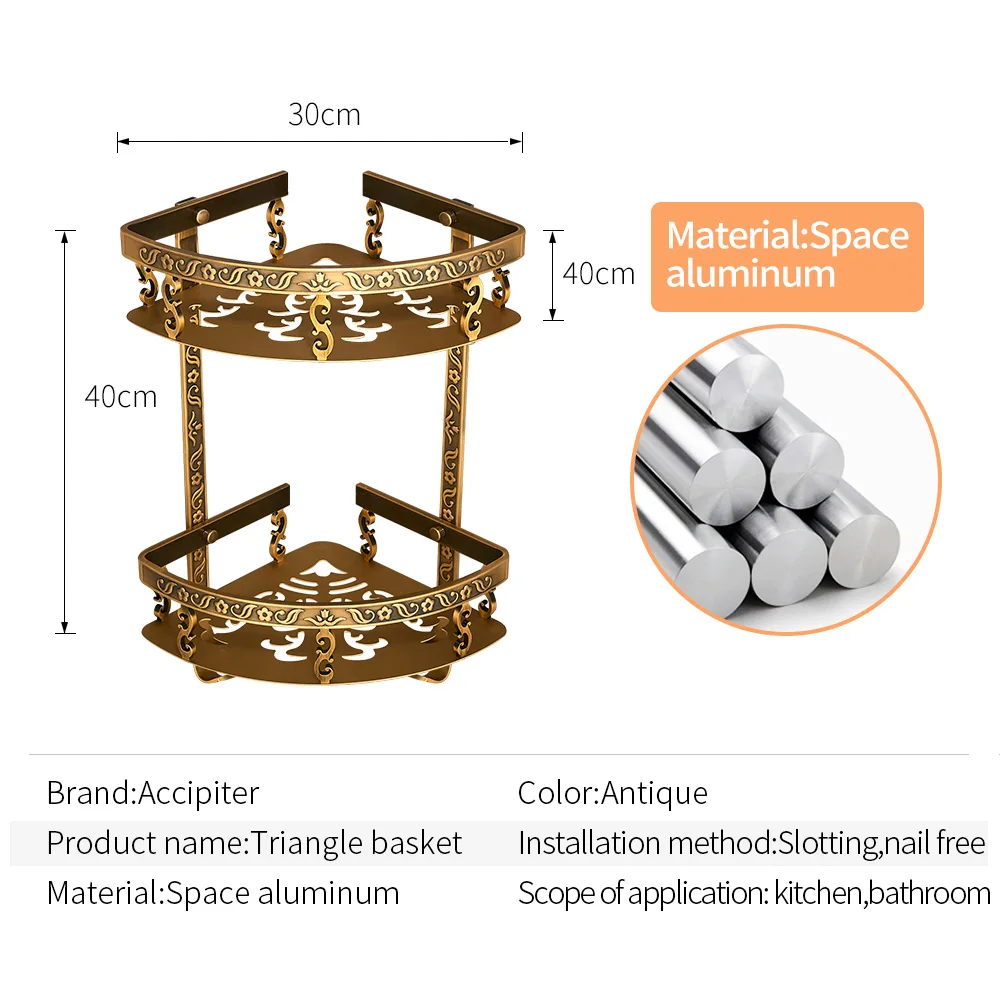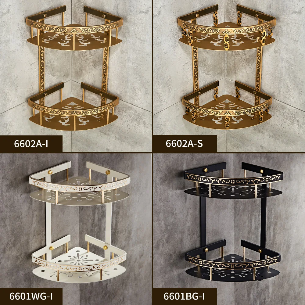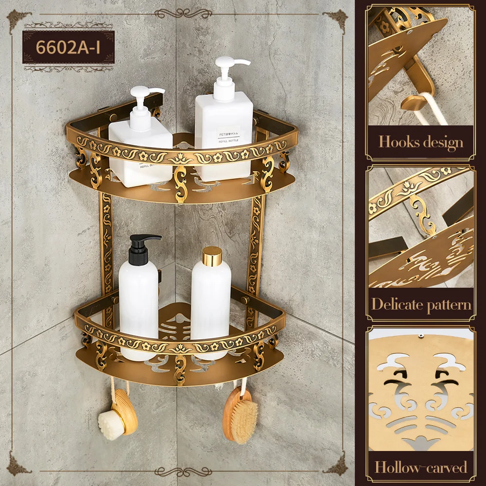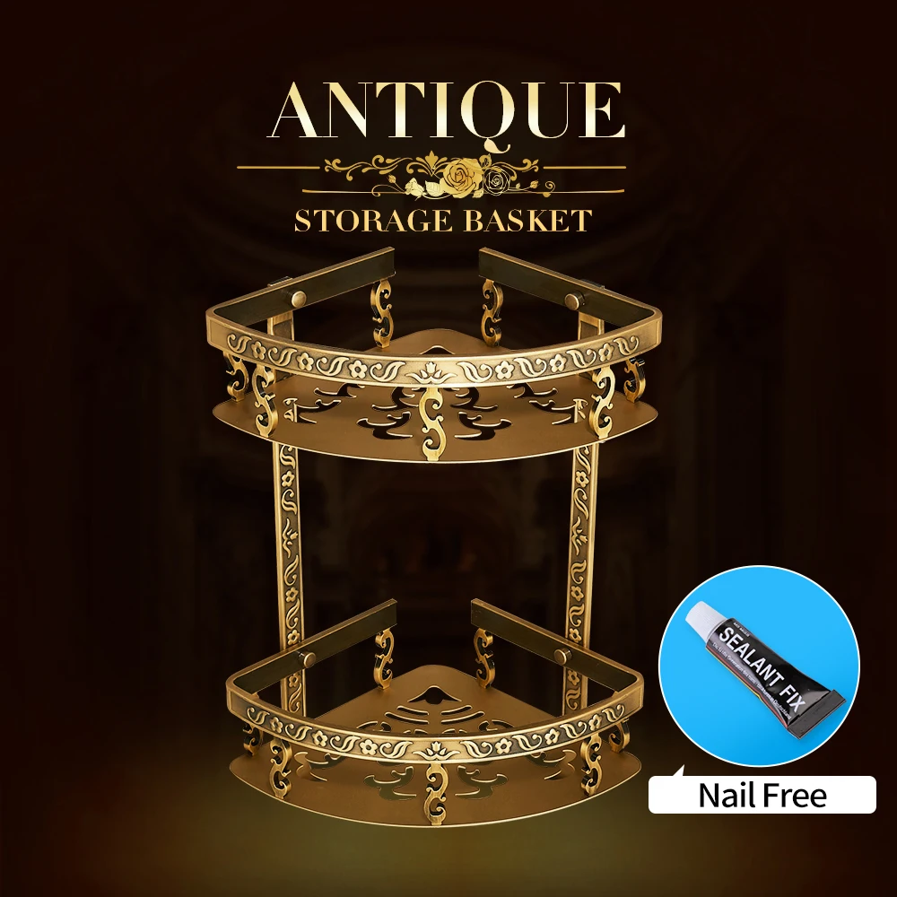 Étagères de salle de bains sans clous 2 couches de coin de douche en métal Antique étagère murale pour shampoing accessoires de salle de bains