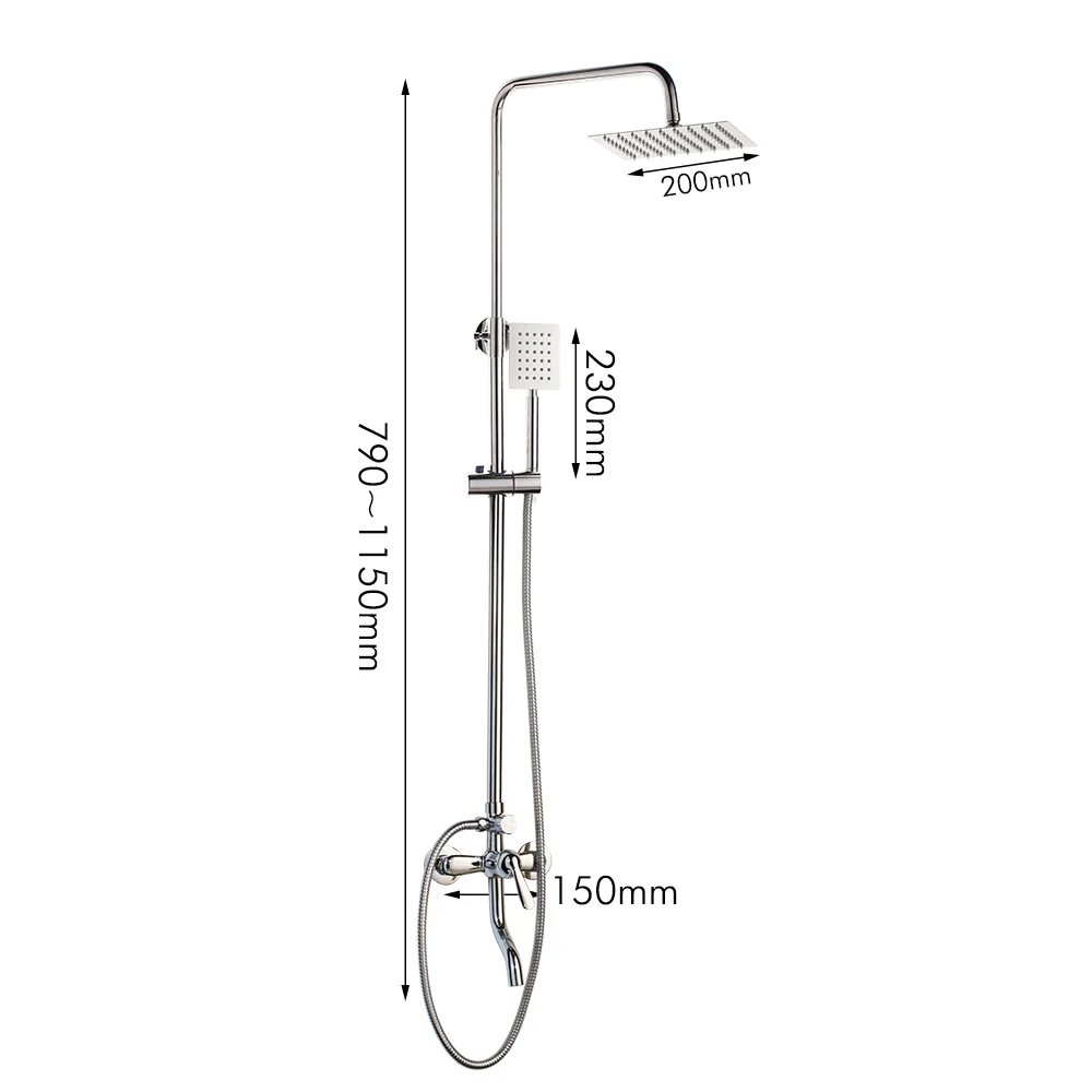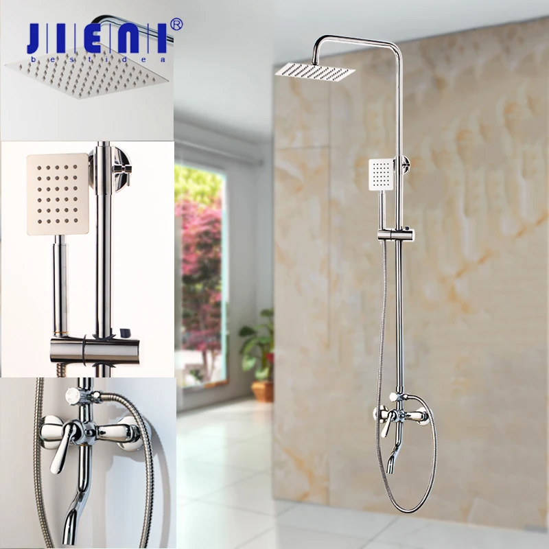 JIENI 8 pouces Chrome polonais pluie montage mural ultra-mince pomme de douche mélangeur robinet salle de bain ajuster la hauteur robinet de douche à main.