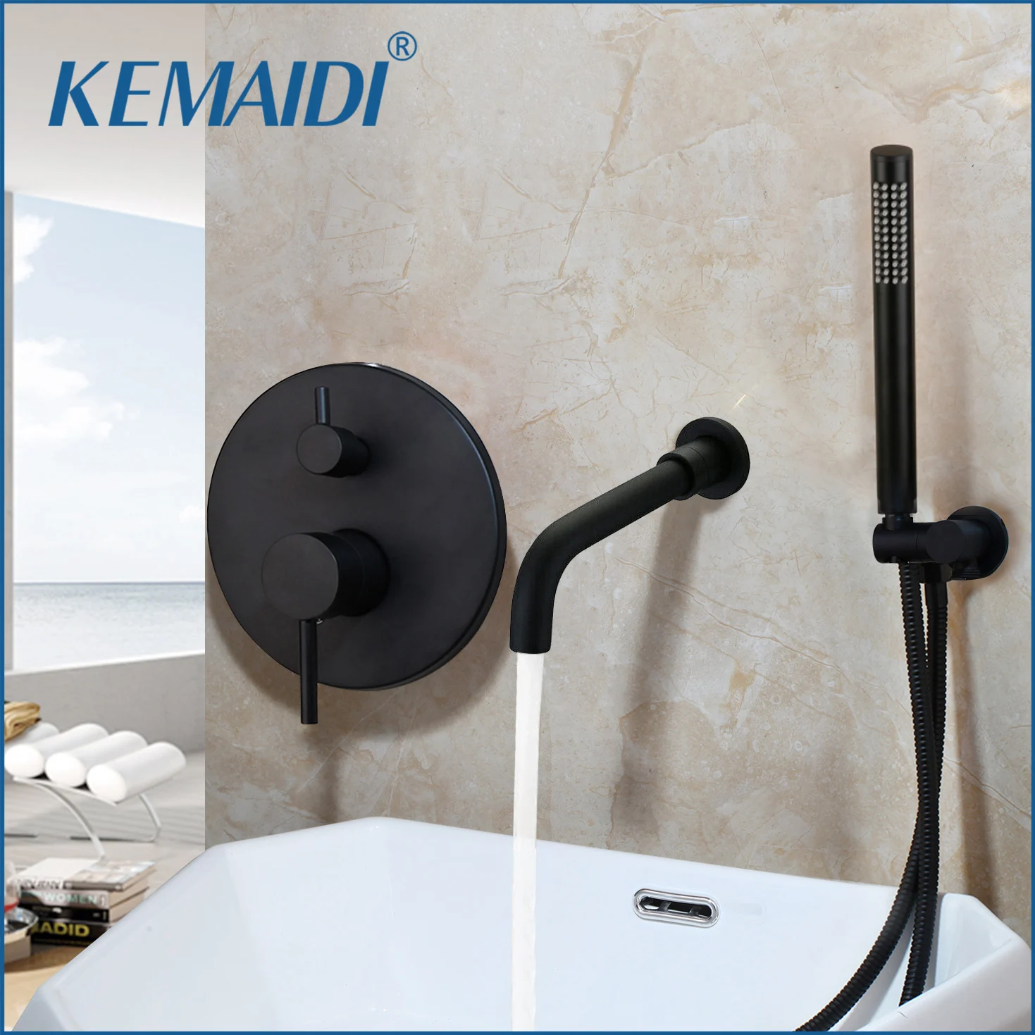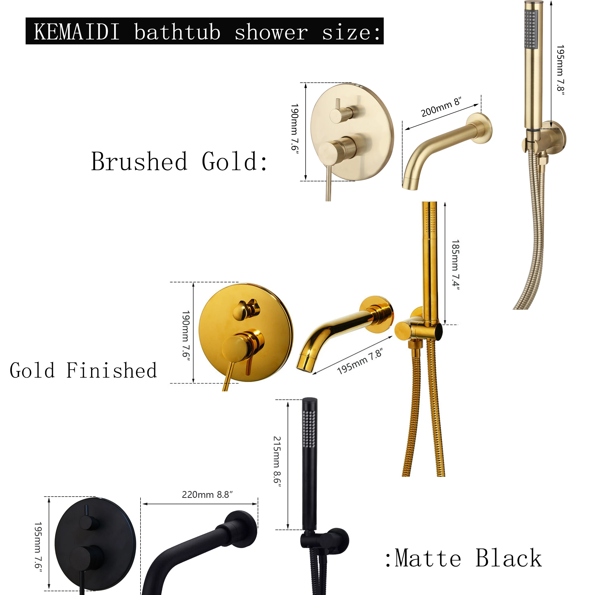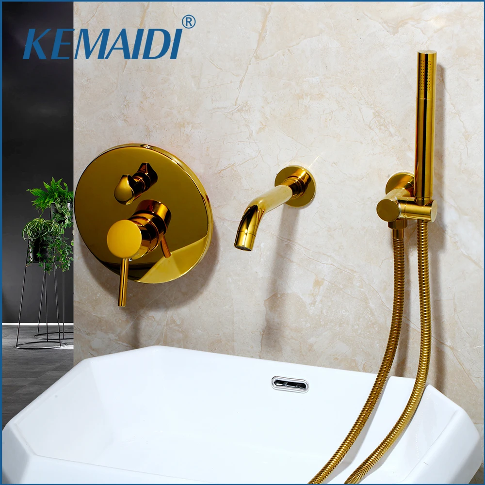 KEMAIDI brosse mitigeur de baignoire doré noir mat 2 fonctions robinets de salle de bain ensemble de douche robinet plaqué ensemble de douche avec pulvérisation à la main