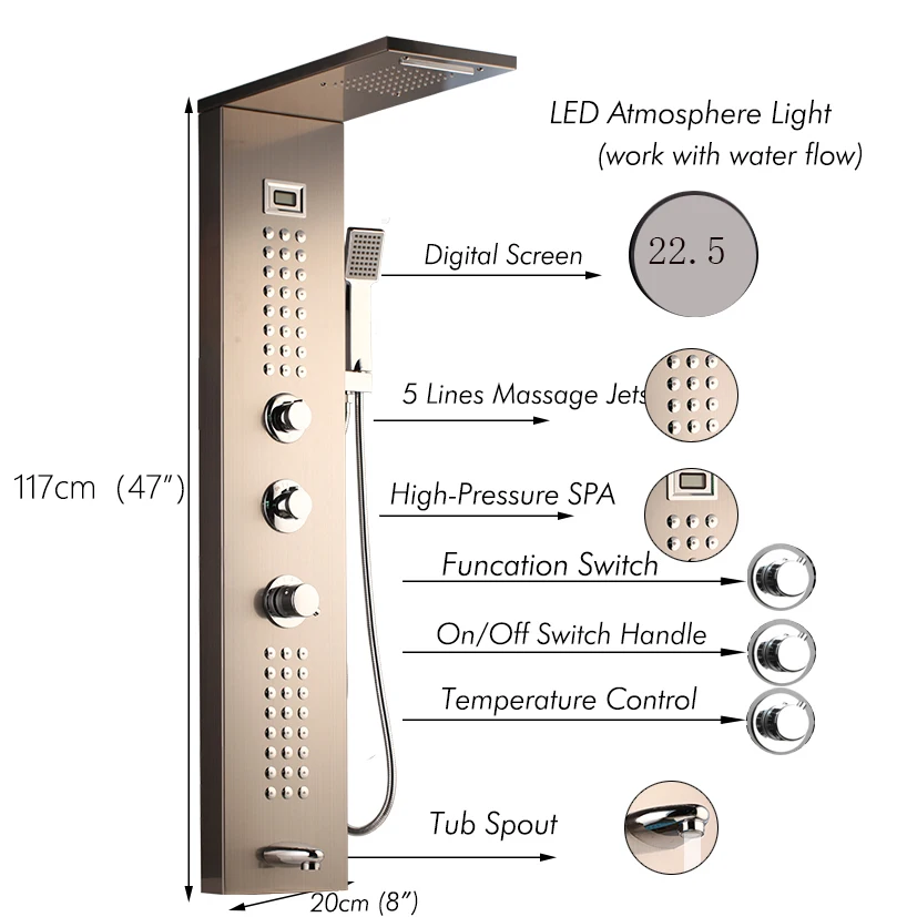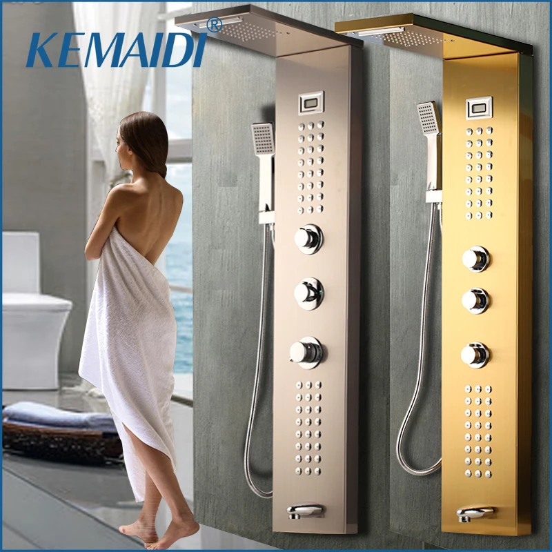 KEMAIDI colonne de douche cascade cascade Jets de Massage colonne de douche mélangeur de douche tour de robinet avec bec de douche manuel panneau de douche noir 6 pièces.