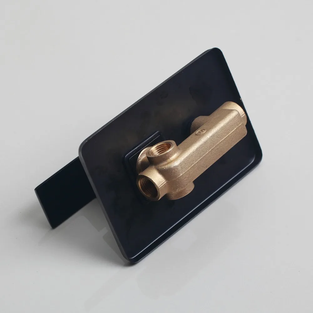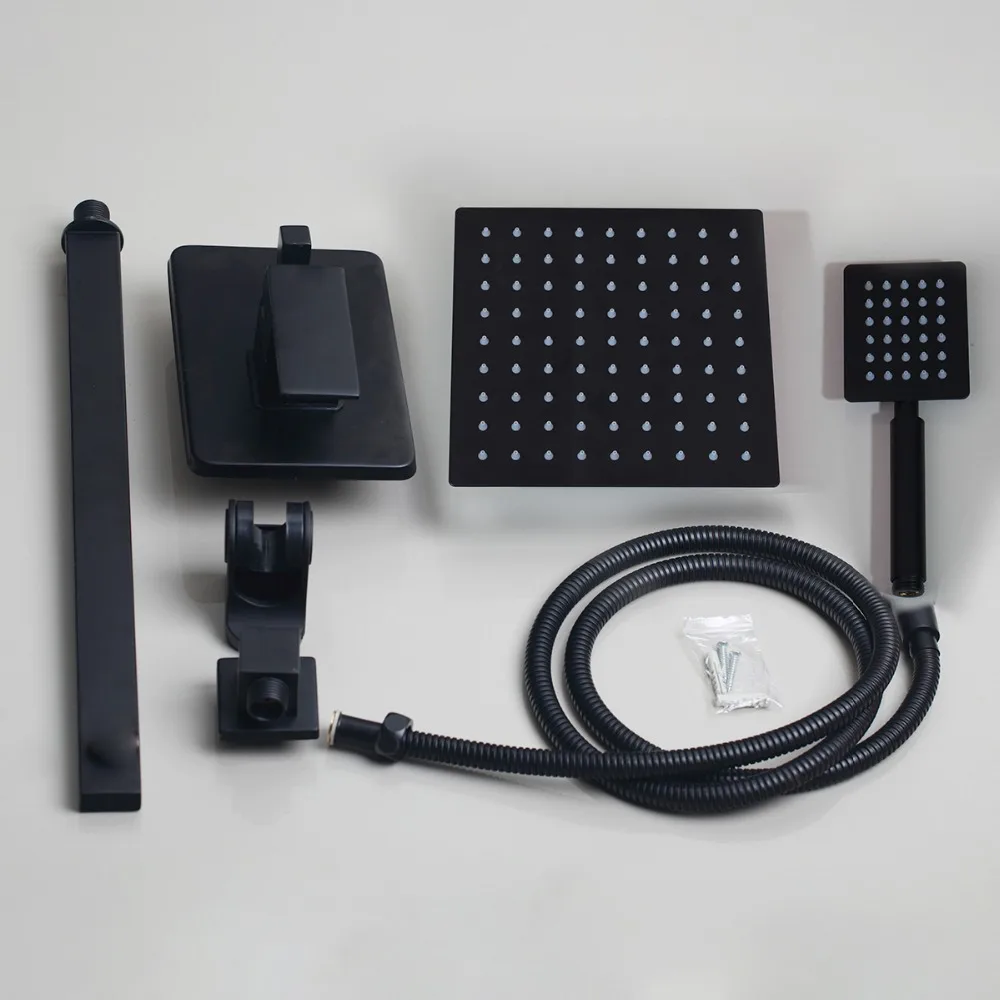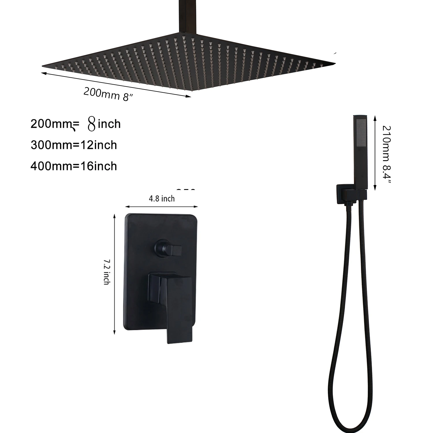 KEMAIDI-robinet de douche noir effet pluie 3 voies pomme de douche carrée bec cascade ensemble de robinets de douche 8 12 16 pouces