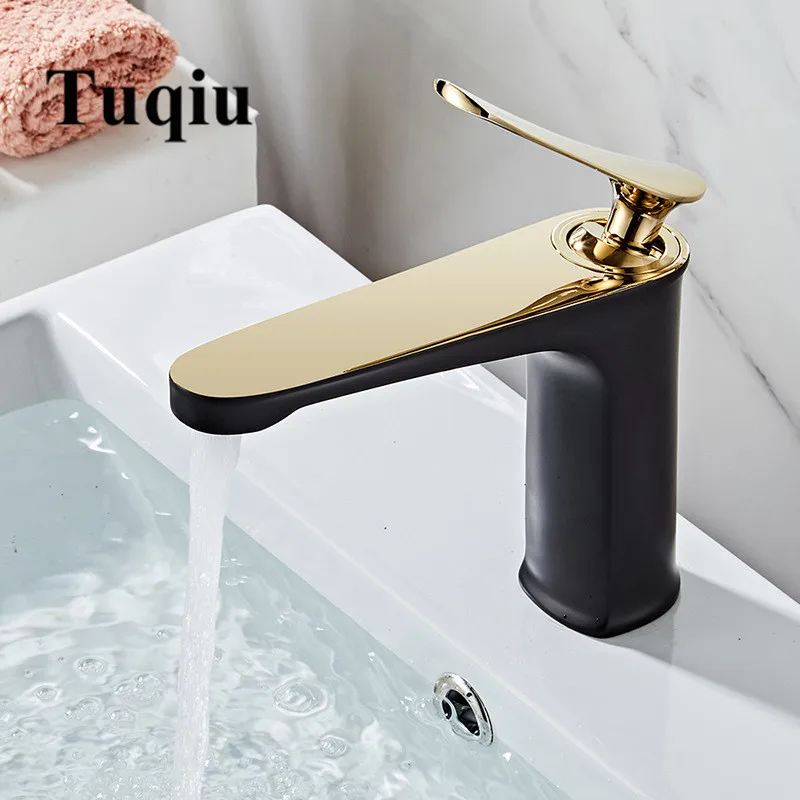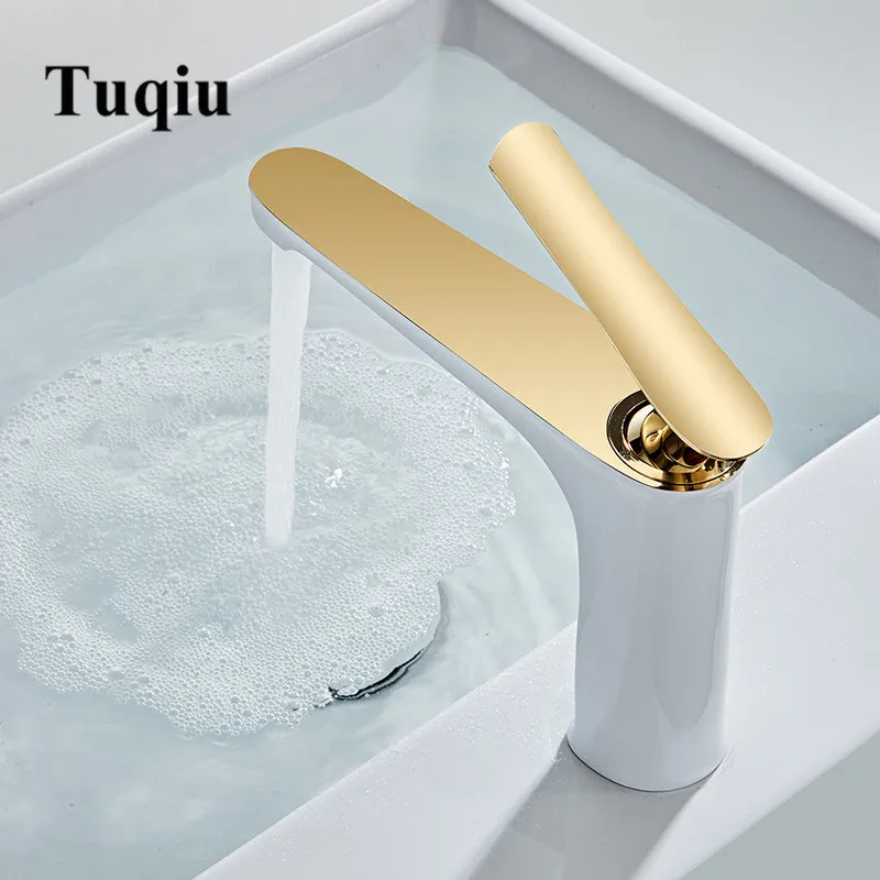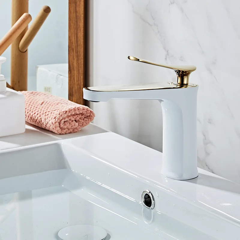 Mélangeur d'eau froide et chaude robinet de salle de bains de lavabo en laiton massif robinet d'évier à une poignée monté sur le pont robinet blanc et or