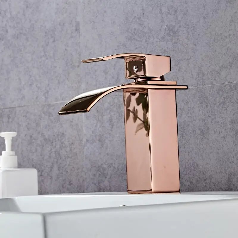Mitigeur pour cascade froide et chaude robinet de salle de bains en or Rose lavabo en laiton robinet mitigeur d'évier à une poignée robinet monté sur le pont