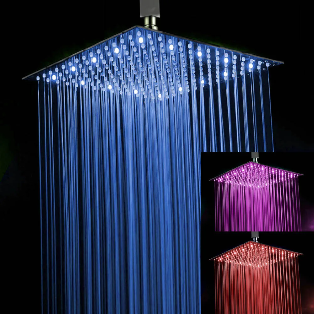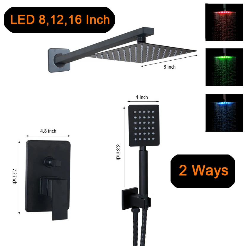 Monite mat noir salle de bain ensemble de douche 8 ~ 16 pouces Led pomme de douche pluie et douche à main Spray noir mural robinet de douche.