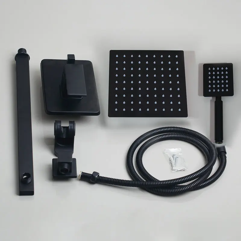 Monite mat noir salle de bain ensemble de douche 8 ~ 16 pouces Led pomme de douche pluie et douche à main Spray noir mural robinet de douche