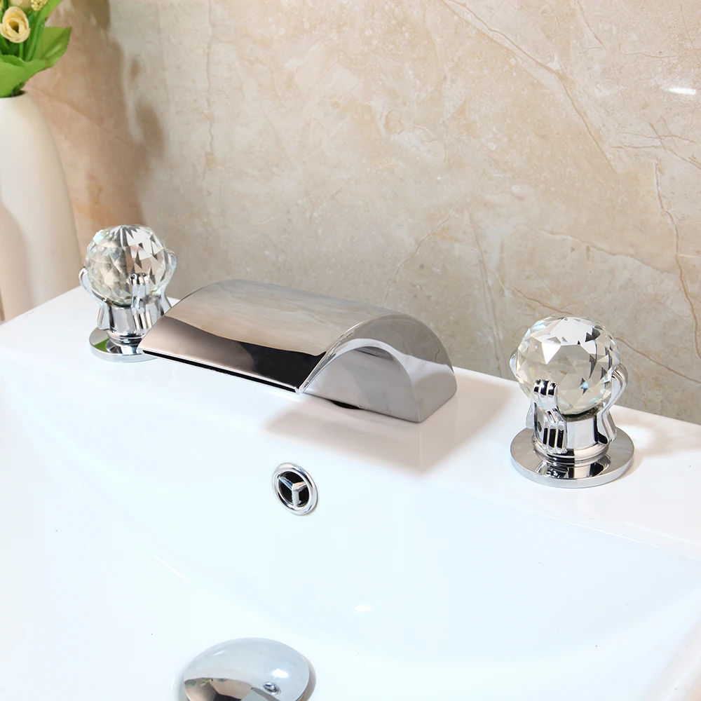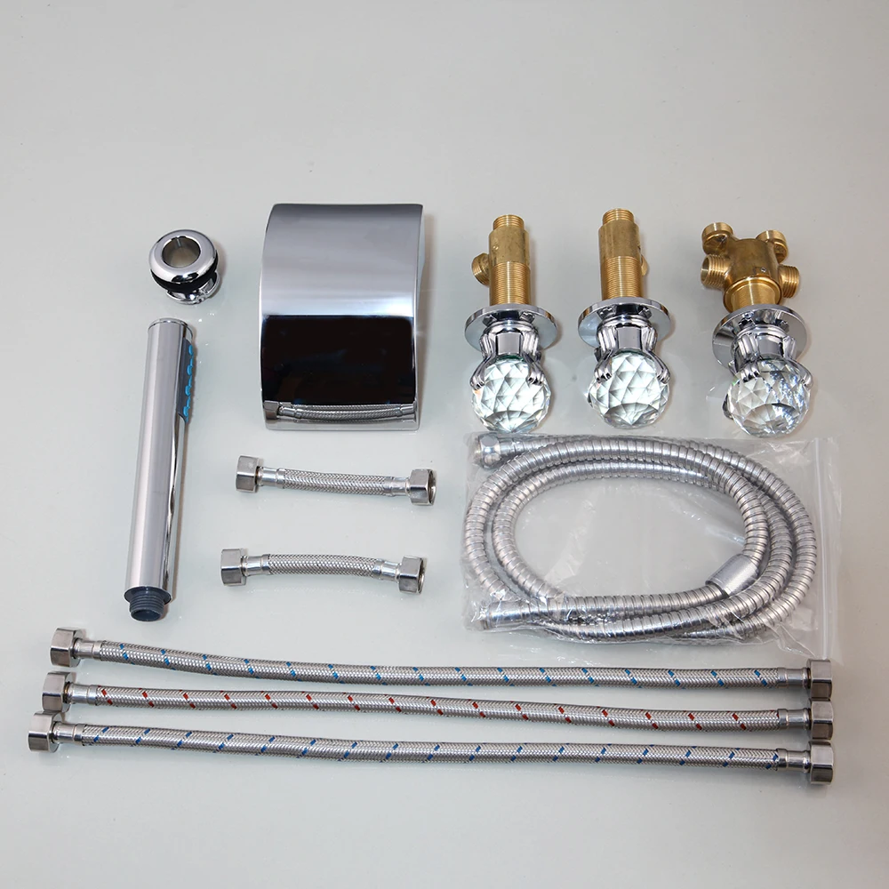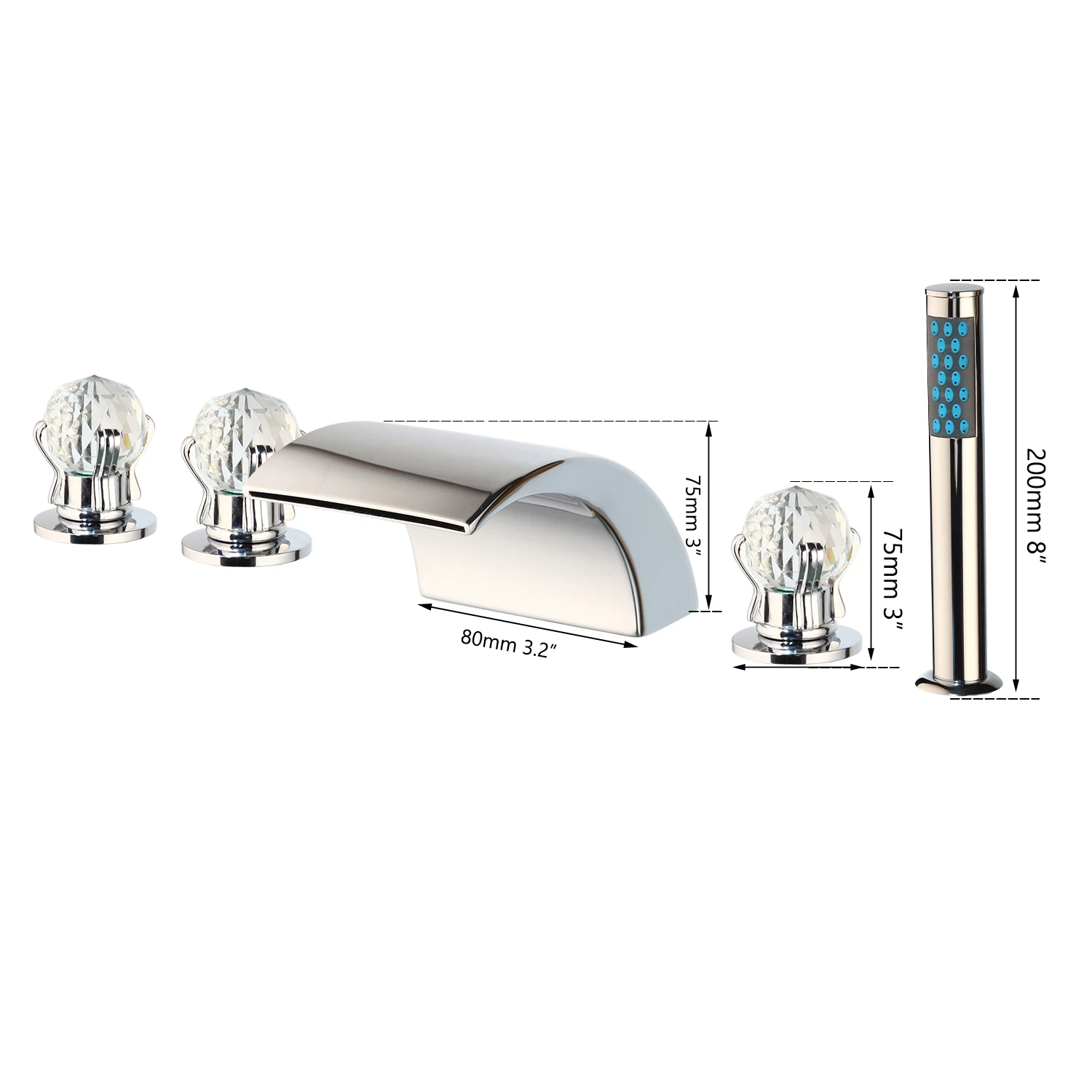 Monite robinet de baignoire en laiton massif robinet à bec à cascade monté sur le pont poignées diamant poli chromé robinet mitigeur de baignoire 5 pièces