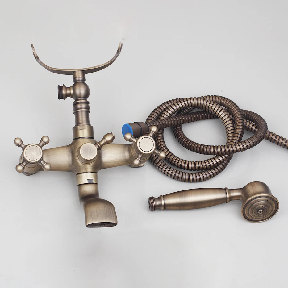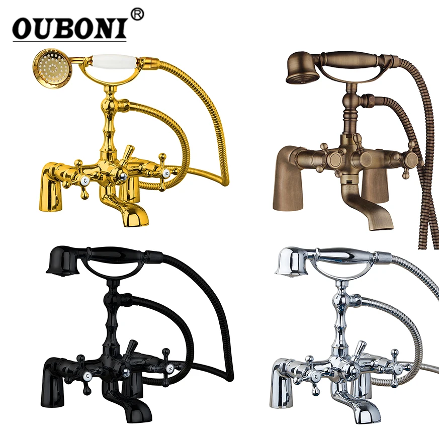 OUBONI Antique en laiton pont monté double poignées Chrome poli or plaque douche salle de bain lavabo baignoire robinet mitigeur robinet