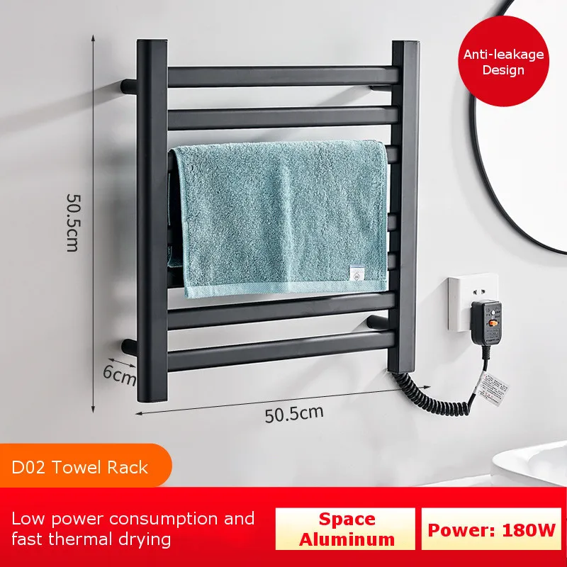 Porte-serviettes chauffant électrique Sèche-serviettes Porte-serviettes en aluminium Stérilisation Chauffe-serviettes intelligent Étagère de salle de bain Tige chauffante Raccords de salle de bain Cintre pour serviette