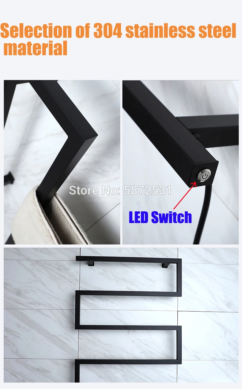 Réchauffeur de serviettes de bain électrique en forme de nœud pour salle de bain et douche en acier inoxydable 304