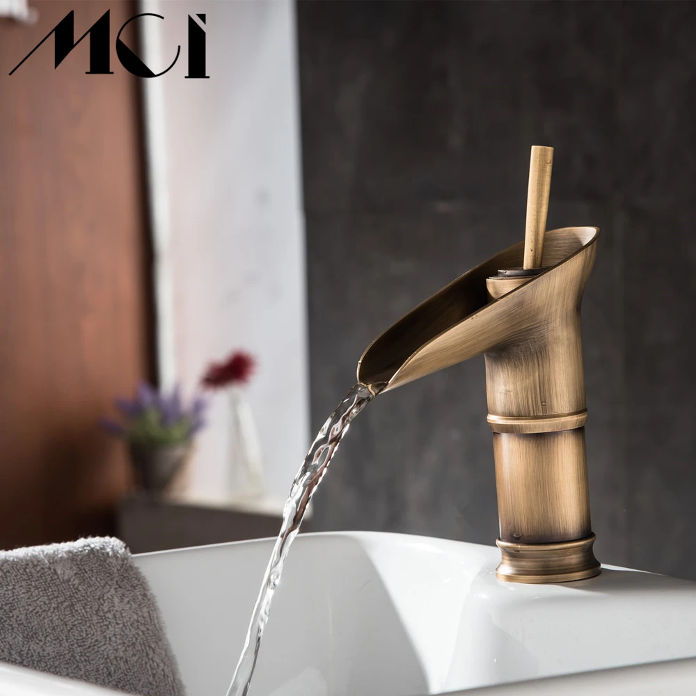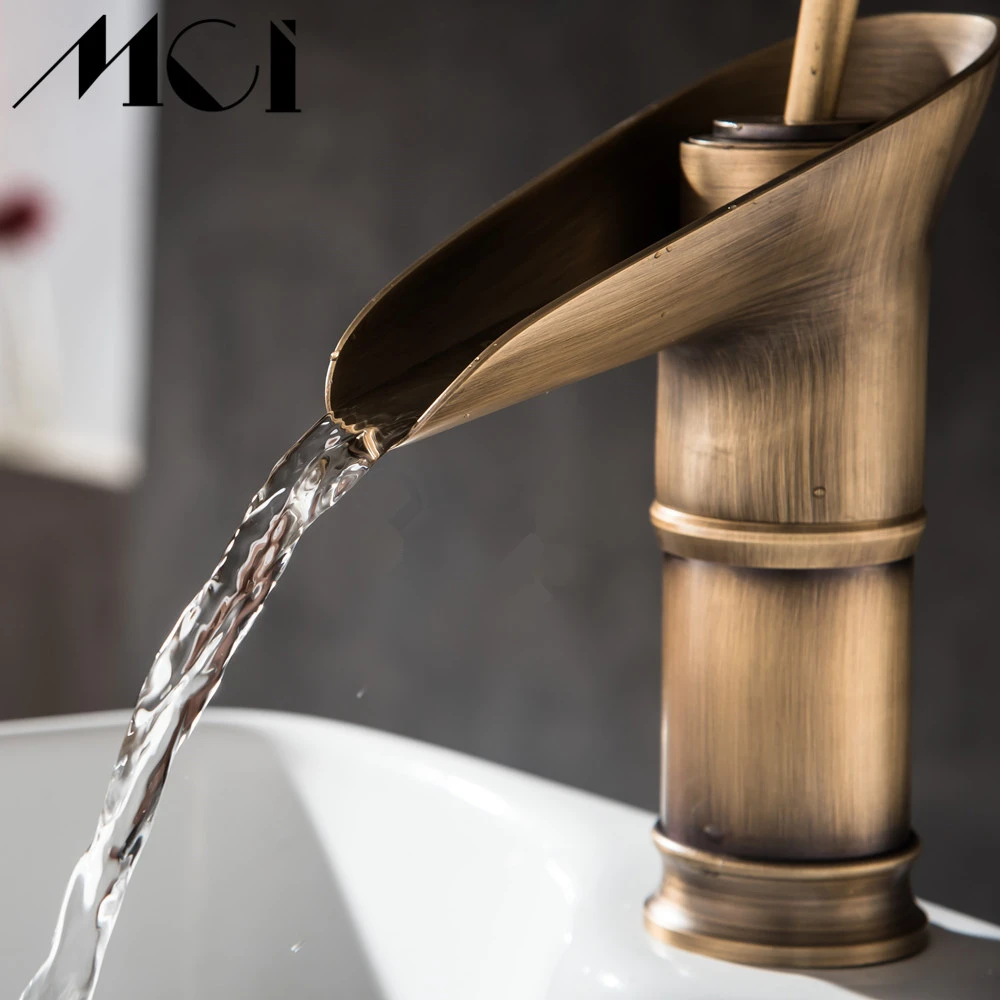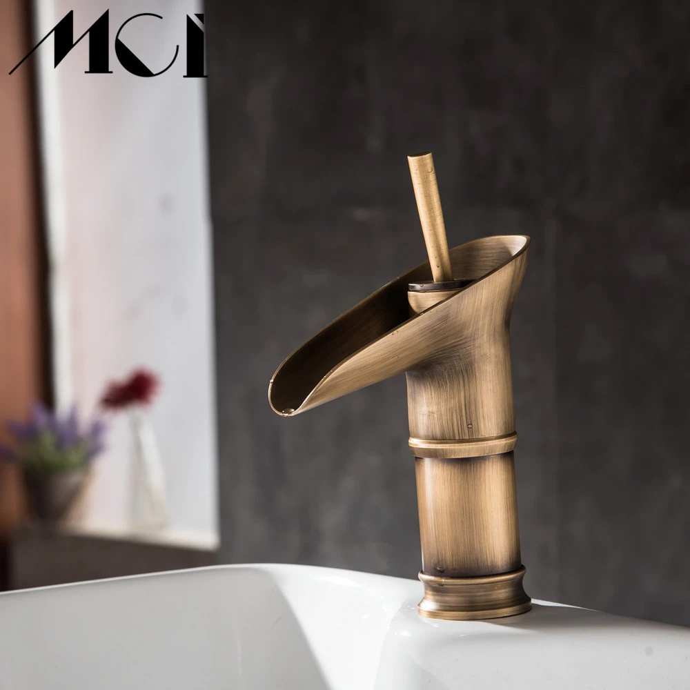 Robinet de lavabo en laiton Antique Verre à vin Antique à levier unique cascade de salle de bains robinets de mélangeur d'évier de salle de bains chaude et froide Torneira Mic