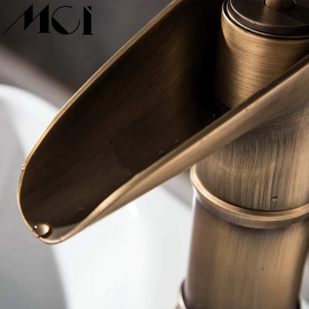 Robinet de lavabo en laiton Antique Verre à vin Antique à levier unique cascade de salle de bains robinets de mélangeur d'évier de salle de bains chaude et froide Torneira Mic.
