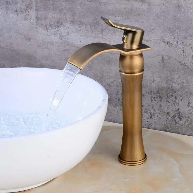 Robinet de lavabo en laiton chaud et froid robinet de salle de bains en Bronze Antique robinet de cascade robinet d'évier robinet d'eau à poignée unique