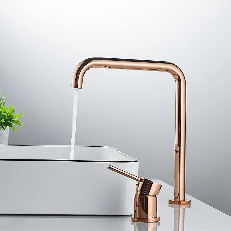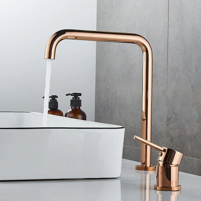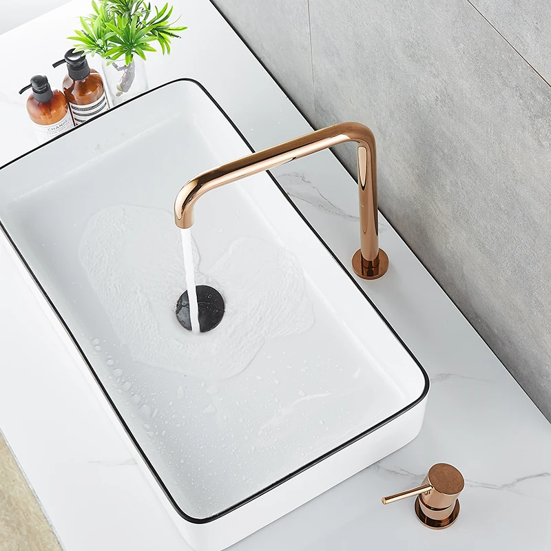 Robinet de lavabo très long tuyau deux trous robinet de salle de bains en or Rose rotatif 360 ° robinet de lavabo noir.