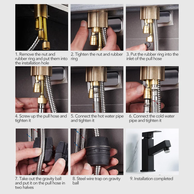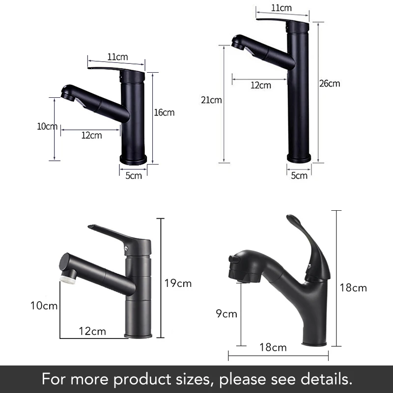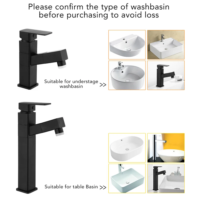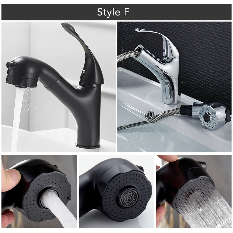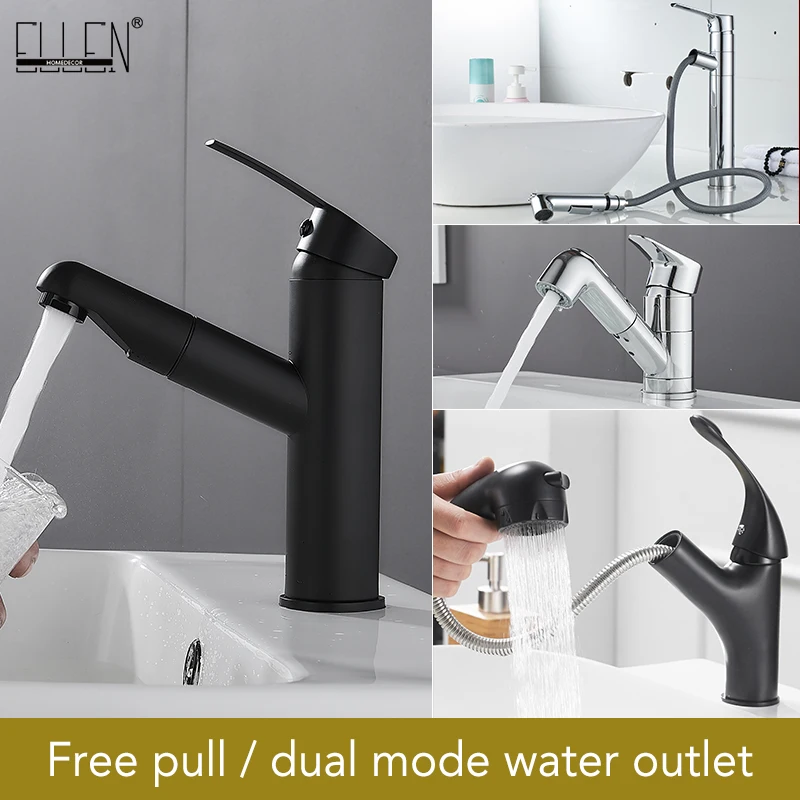Robinet mitigeur d'évier de lavabo de salle de bains extractible robinet à poignée unique navire à grue d'eau chaude et froide noir chromé ELK83