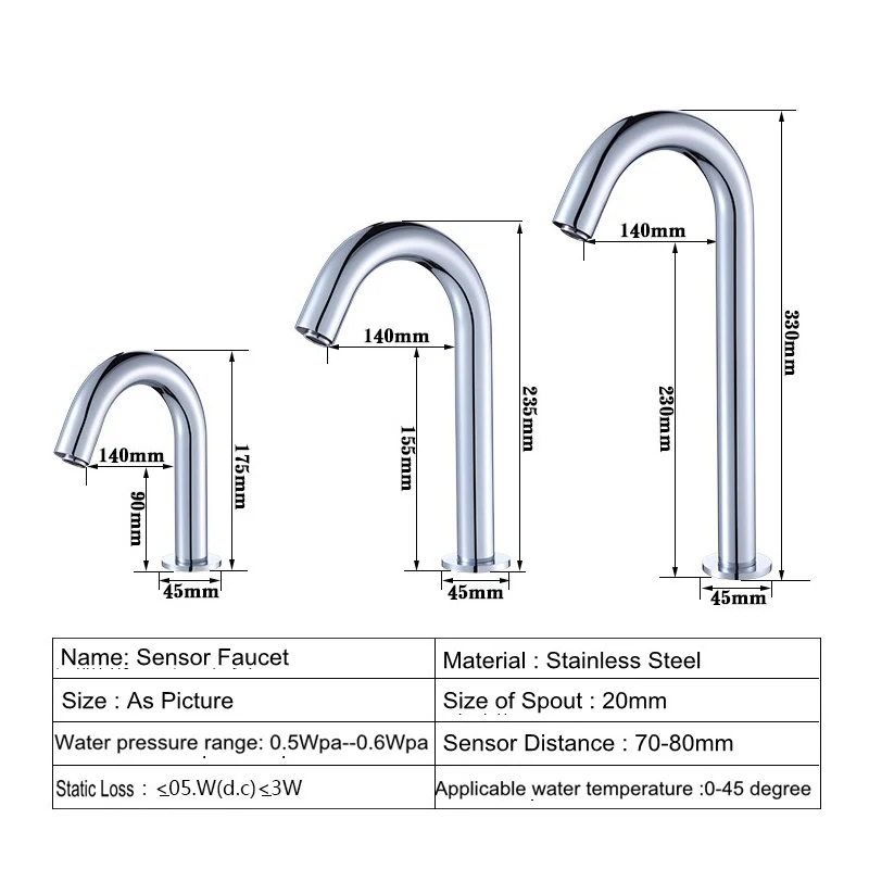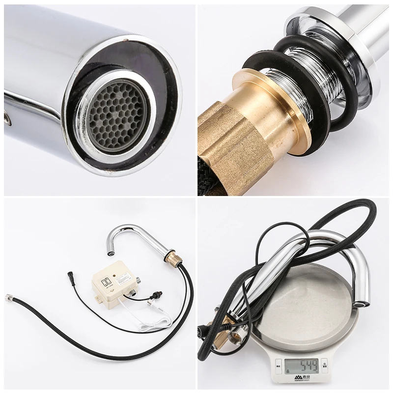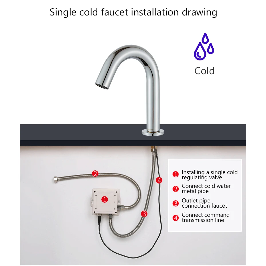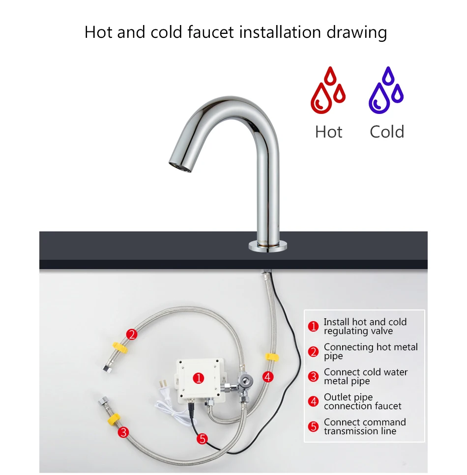 Robinet tactile froid et chaud Mitigeur de lavabo de salle de bains monté sur le pont robinet à capteur gonflé automatique grue de robinet ELS83
