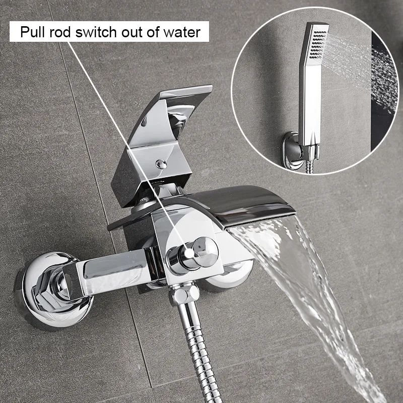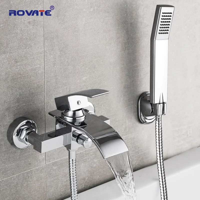ROVATE baignoire ensemble de douche mural cascade robinet de bain salle de bain froid et chaud mitigeur en laiton chromé.