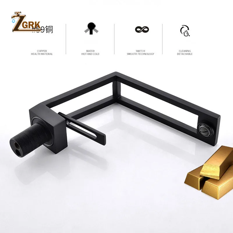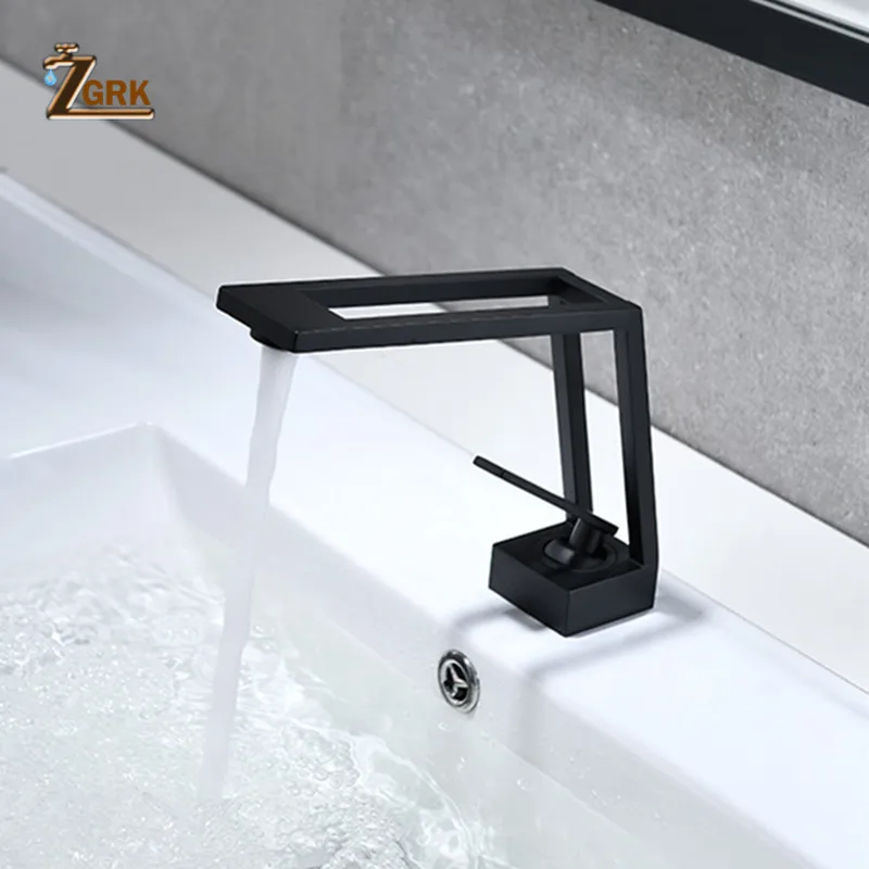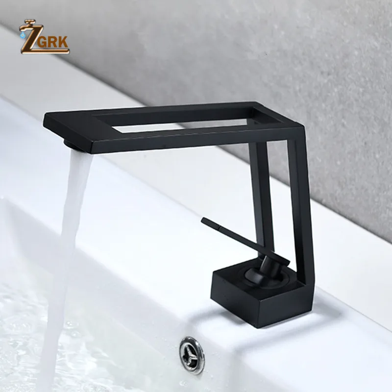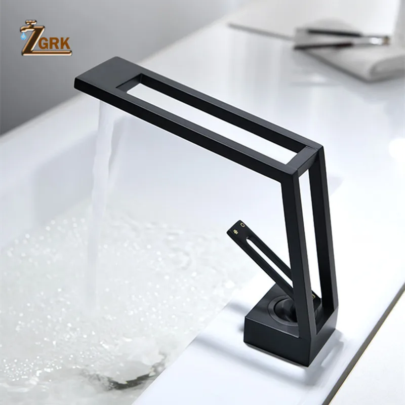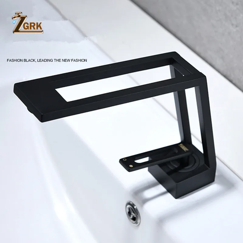 ZGRK robinet de lavabo en laiton noir robinet de lavabo Design creux robinet mitigeur d'évier robinetterie de salle de bains d'eau chaude et froide