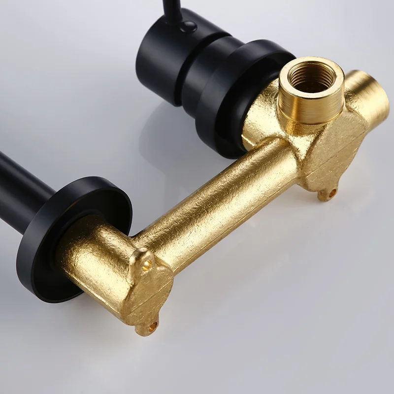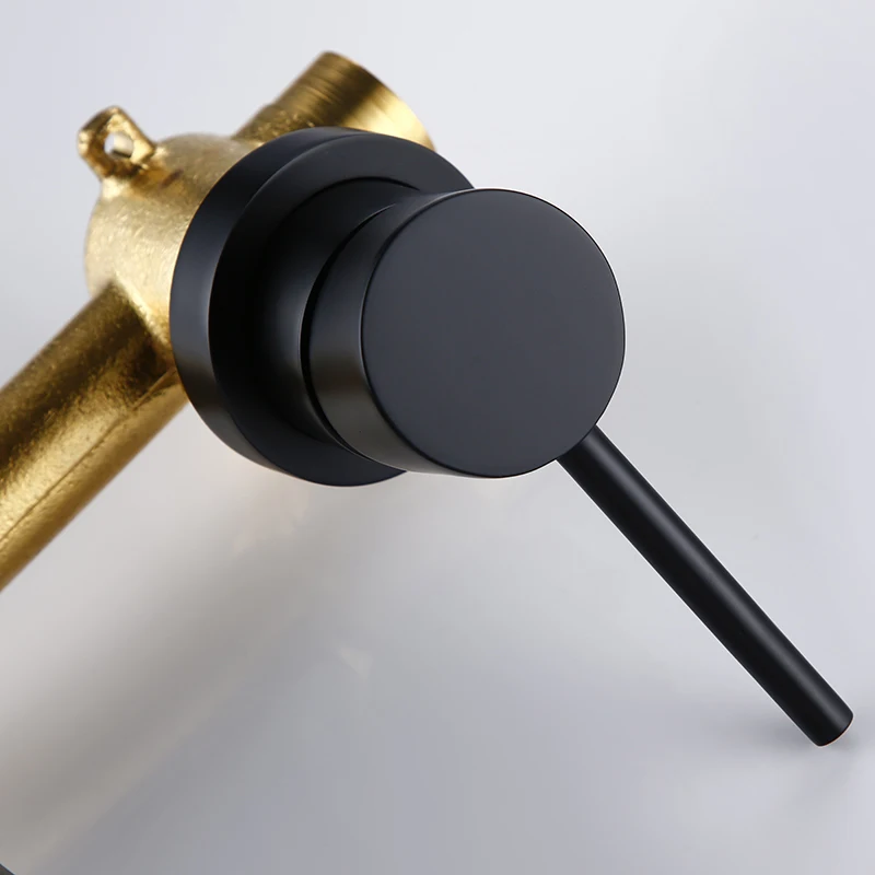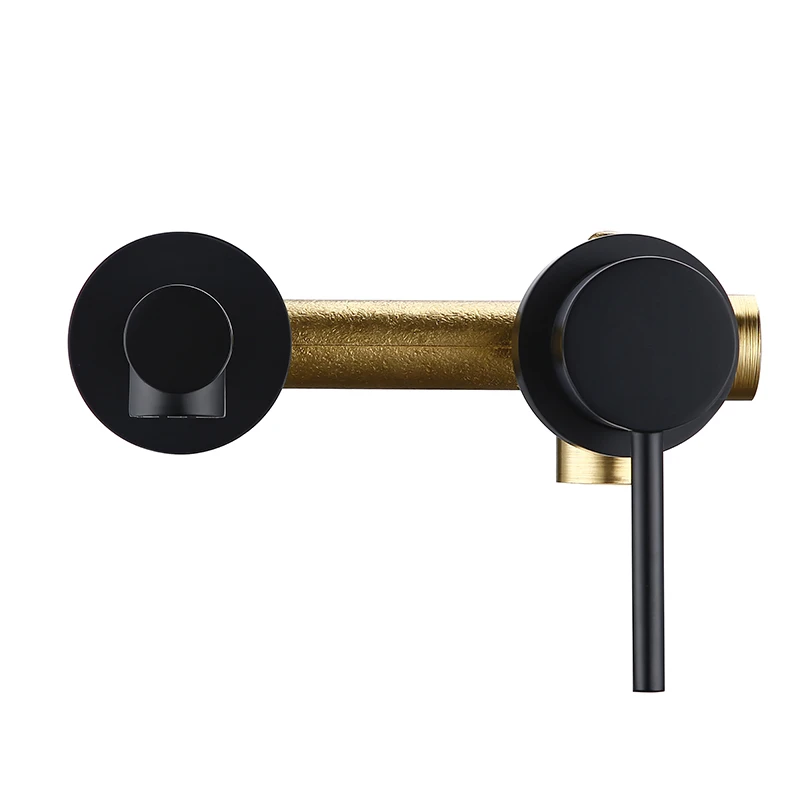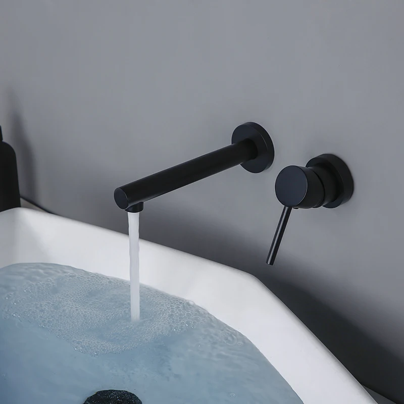 Bagnolux robinet mural moderne chaud et froid robinet en céramique rond à trou unique robinet d'évier de salle de bains en Alba noir mat.