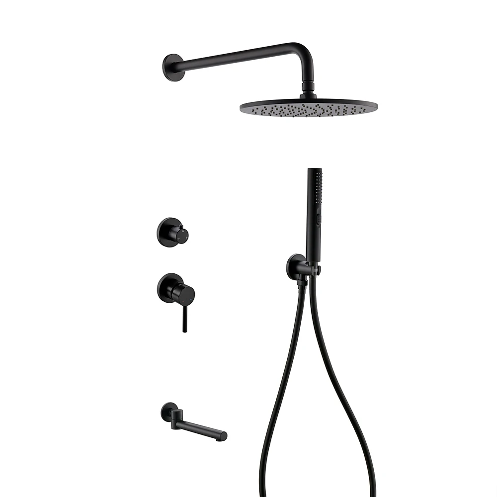 Bagnolux système de douche 3 fonctions montage mural noir mat en laiton encastré Top robinet de salle de bains pluie de 10 pouces
