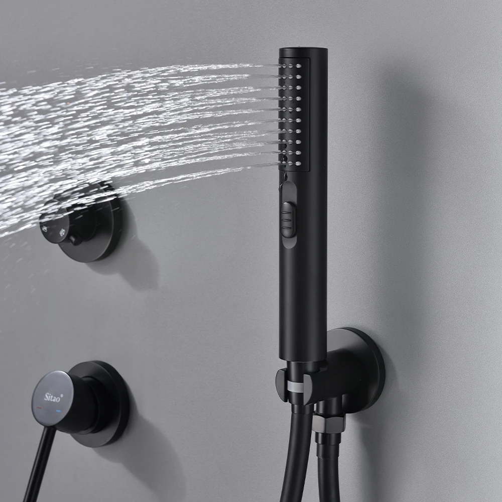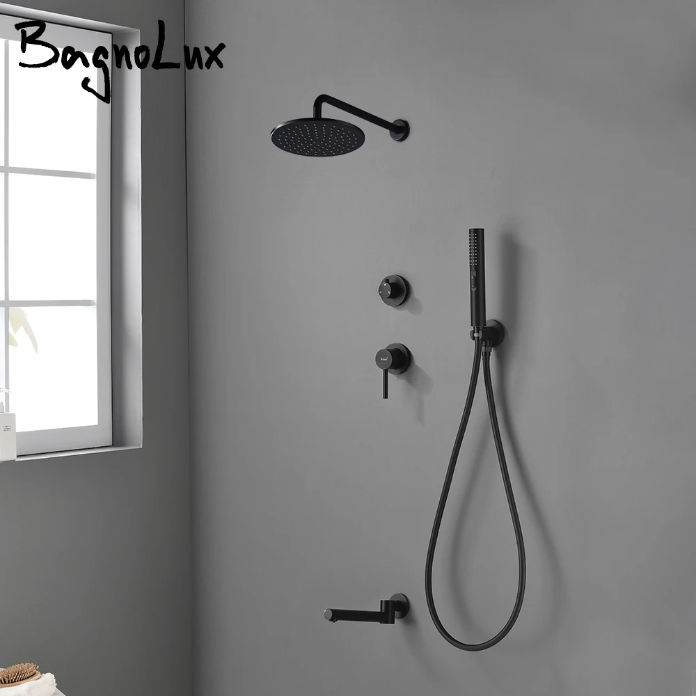 Bagnolux système de douche 3 fonctions montage mural noir mat en laiton encastré Top robinet de salle de bains pluie de 10 pouces.