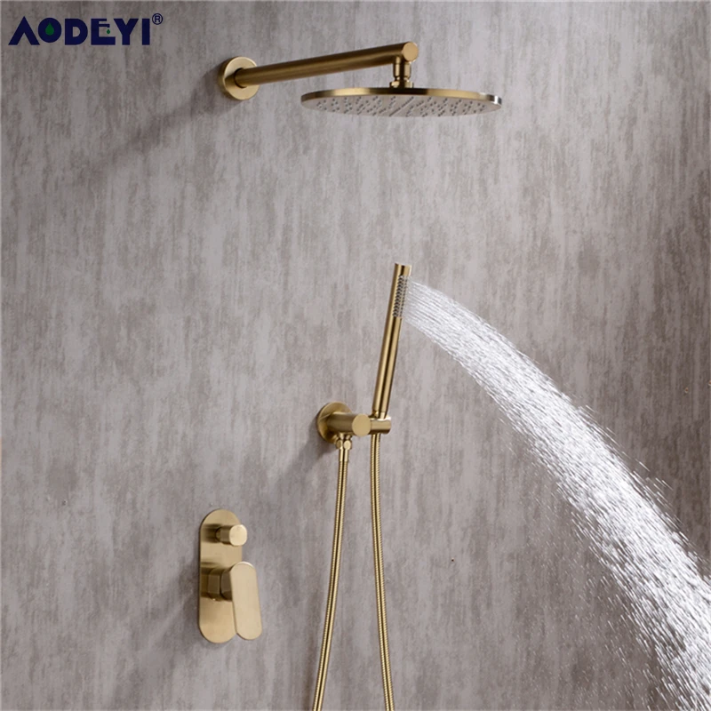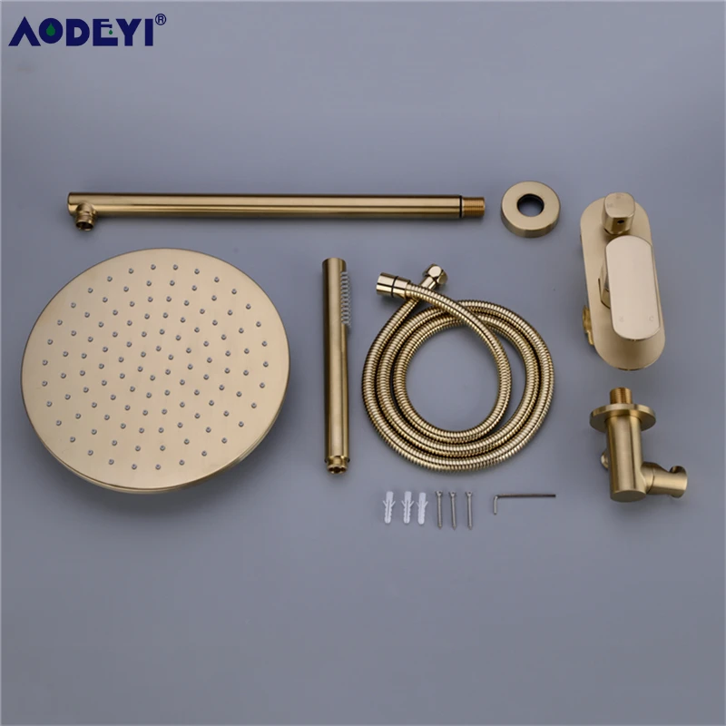 Ensemble de douche de salle de bain en laiton massif Rianfall pomme de douche système de robinet de douche mural bras de douche mélangeur ensembles d'eau or brossé
