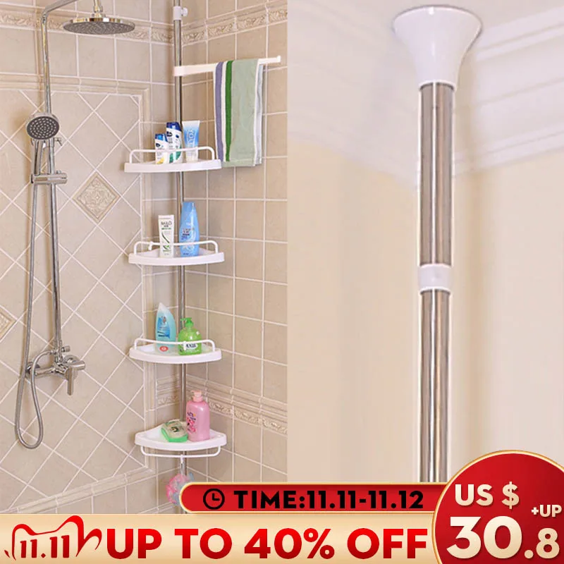 Étagère de salle de bain meuble de rangement d'angle de douche à 4 niveaux meuble de rangement en acier inoxydable et évolutif