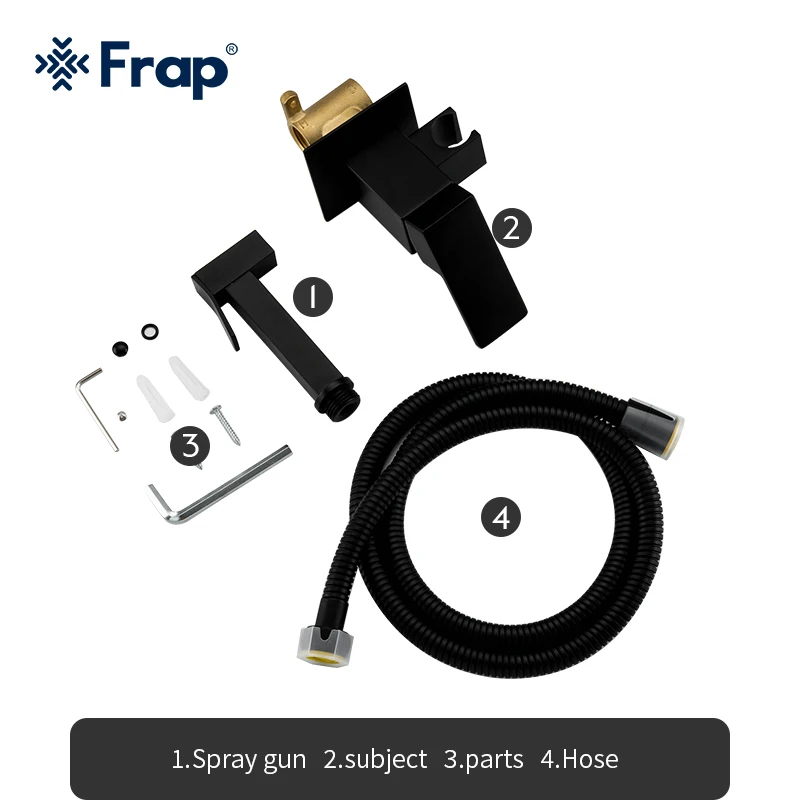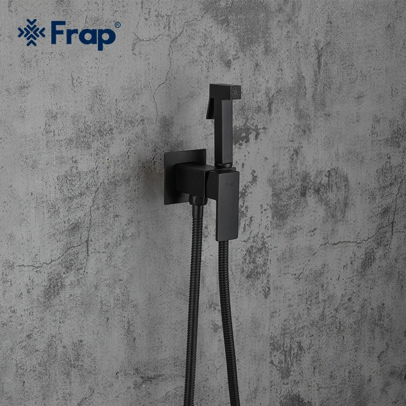 FRAP Bidets noir robinet de douche laveuse mélangeur musulman ducha laiton higienica eau froide et chaude robinet grue carré douche bidet spray.