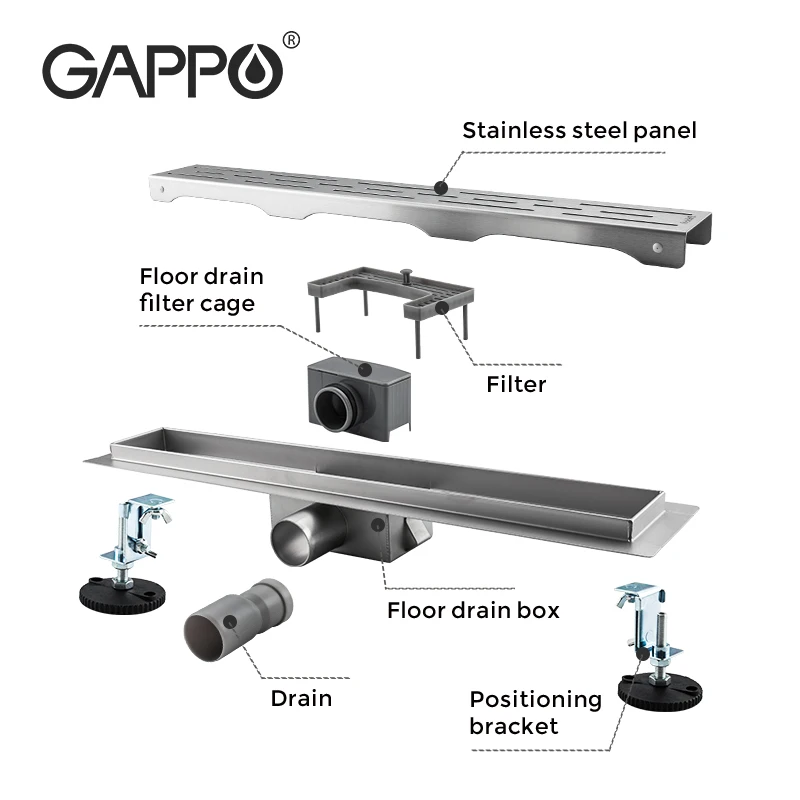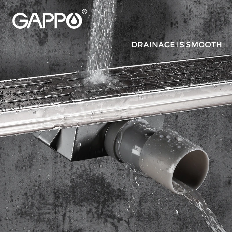 GAPPO-drain pour sol de douche en acier inoxydable long linéaire anti-odeur pour salle de bain.