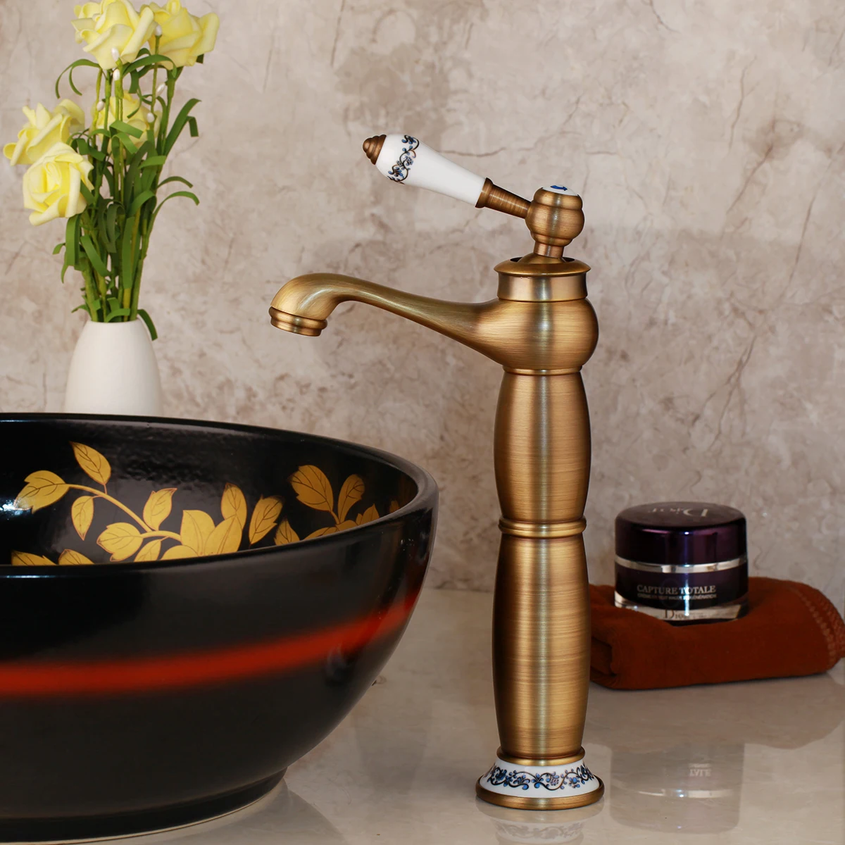 KEMAIDI mélangeur de lavabo en laiton/Chrome Antique robinets de salle de bains dorés à poignée unique robinet d'eau froide et chaude à trou unique torneira.