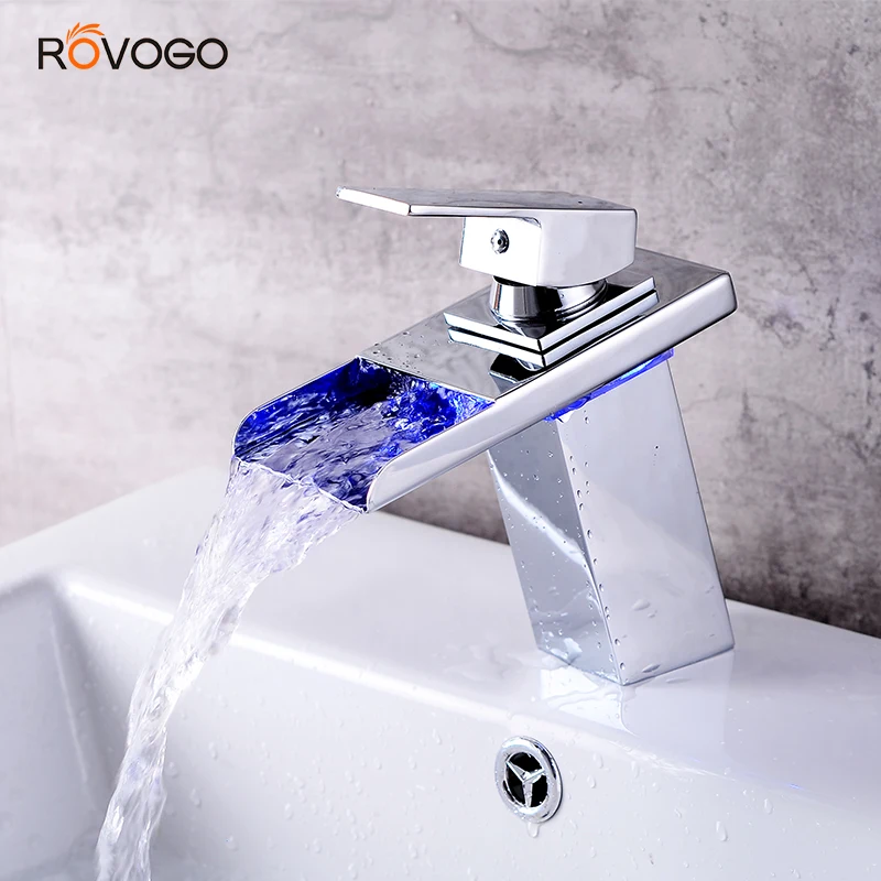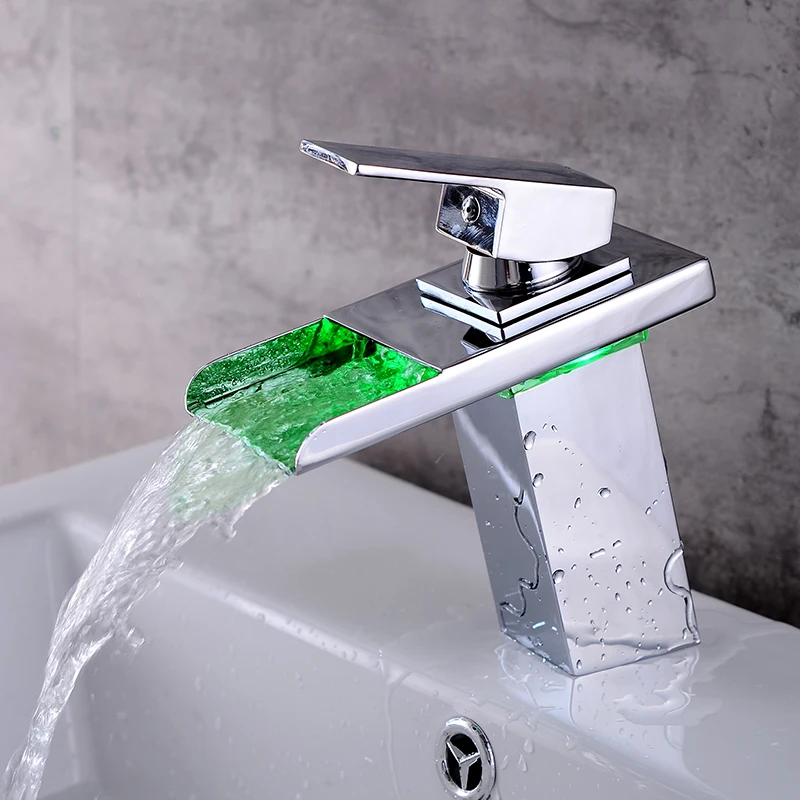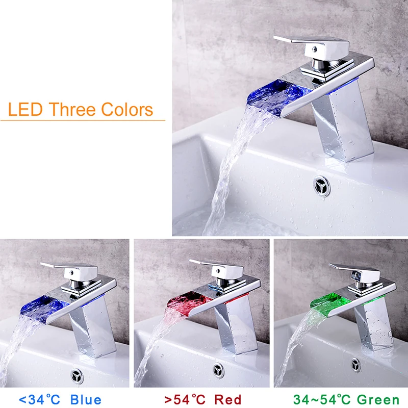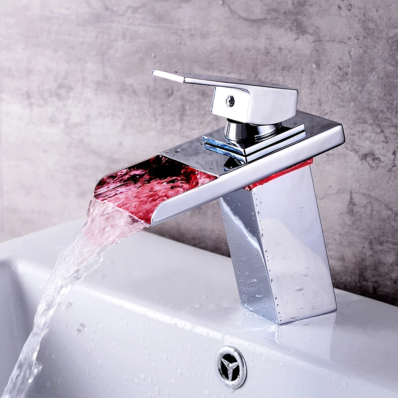 LED lumières salle de bain bassin robinet cascade laiton Chrome froid chaud évier mitigeur Torneira.