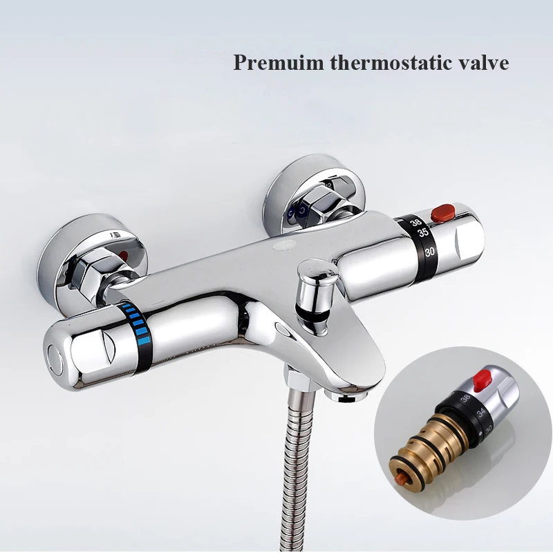 Mitigeur de baignoire mural robinet de douche thermostatique Chevilles renversées robinet de bain-douche thermostatique avec droite pour l'eau chaude.