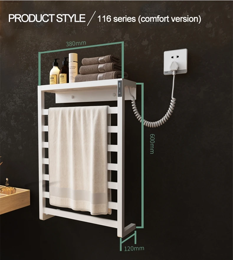 Porte-serviettes chauffant électrique sèche-serviettes porte-serviettes en acier inoxydable. Porte-serviettes intelligent stérilisant 116 raccords de salle de bain.