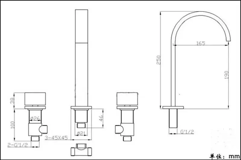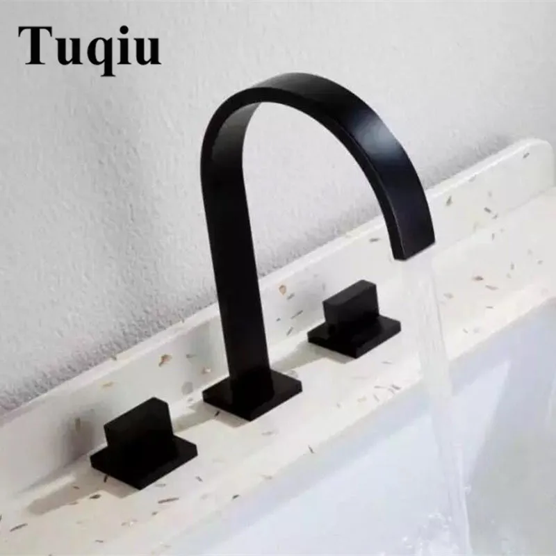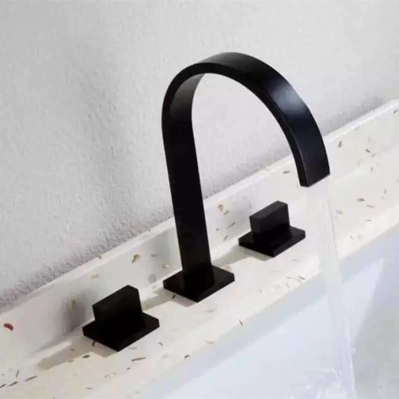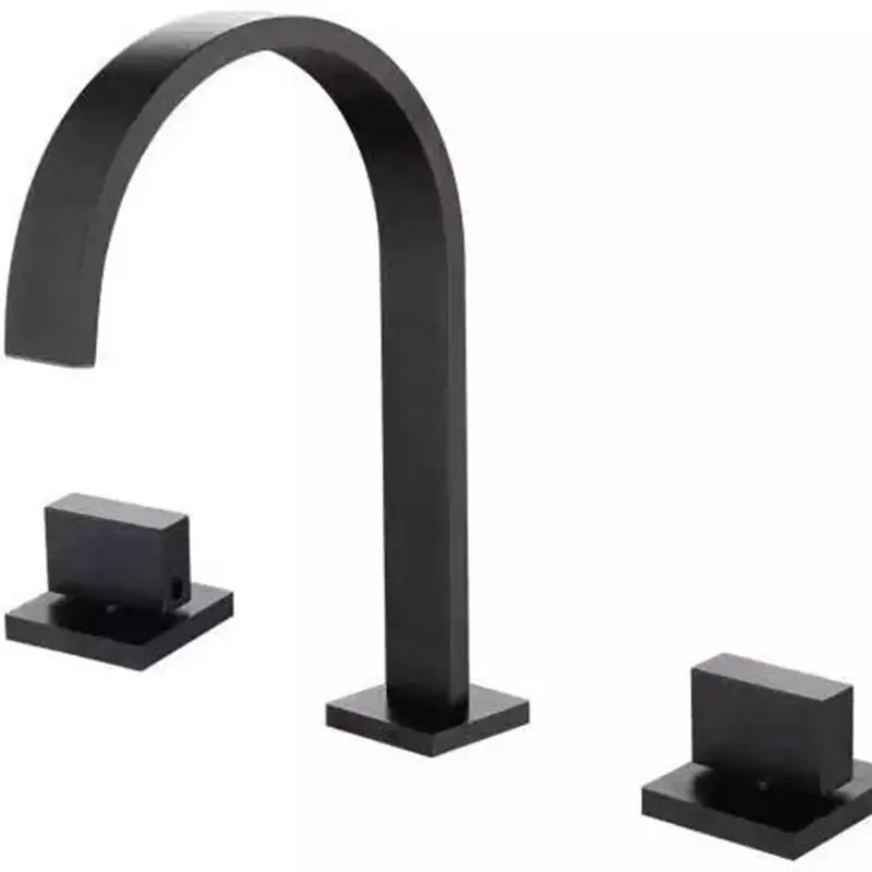 Robinet de lavabo en laiton chromé/or/noir Monté sur le pont robinet de salle de bains robinet d'évier 3 trous Double poignée robinet d'eau chaude et froide.