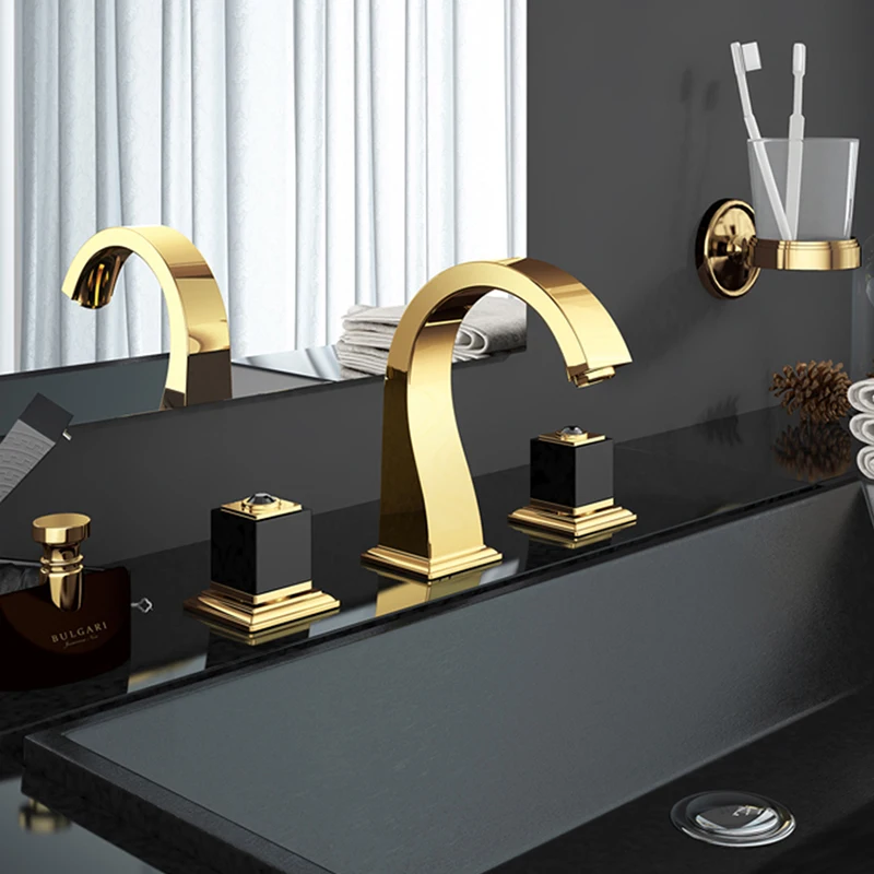 Robinet mélangeur de lavabo en laiton robinets de lavabo de salle de bains peinture dorée 3 trous Double poignée robinets de lavabo de luxe eau chaude et froide.