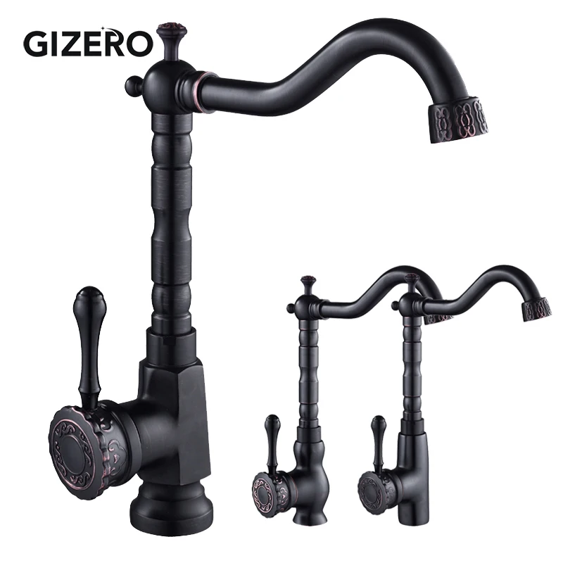 Robinet mélangeur de salle de bains froide et chaude robinet de lavabo en Bronze noir tuyau rotatif à 360 degrés mélangeur d'évier de cuisine ZR397.