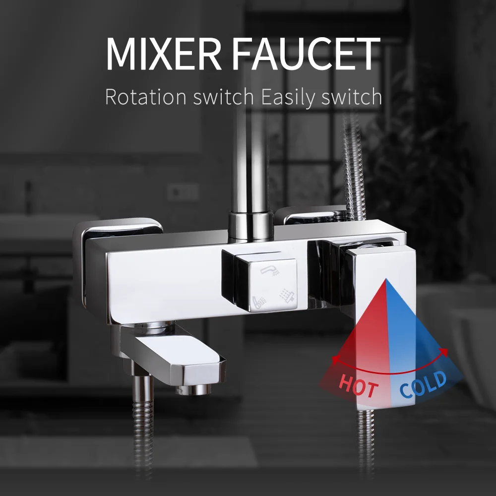 Robinets de douche avec pomme de douche de 8 pouces ensemble de 3 fonctions robinets de bain mélangeur d'eau chaude et froide Chrome avec distributeur de savon.